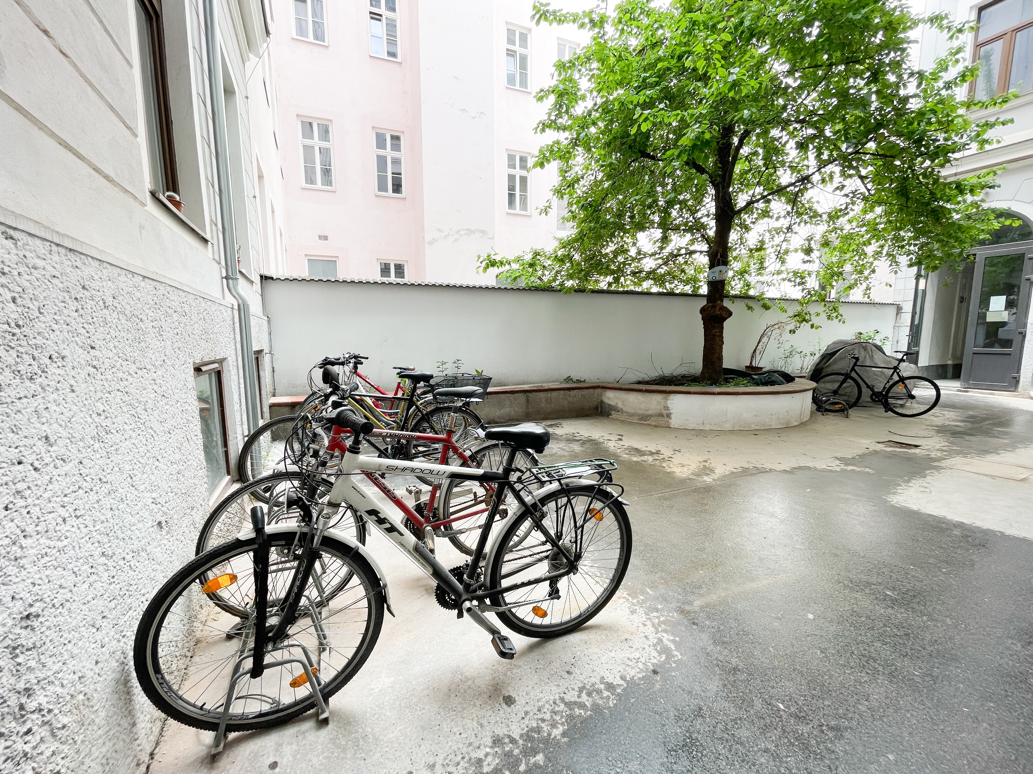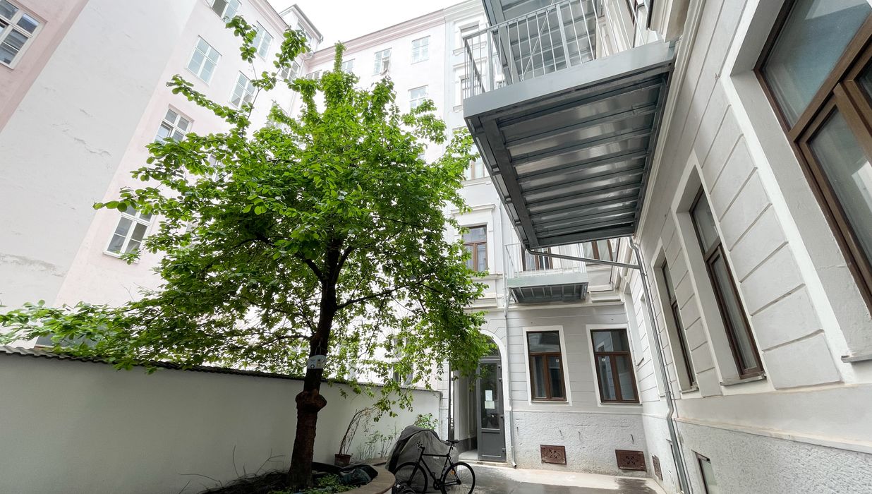 Die Wohnung befindet sich im 4. Liftstock eines schönen Altbaus - die beiden Zimmer sind straßenseitig auf die ruhig gelegene Novaragasse ausgerichtet und die Wohnküche mit dem Balkon südseitig in Richtung Innenhof.
