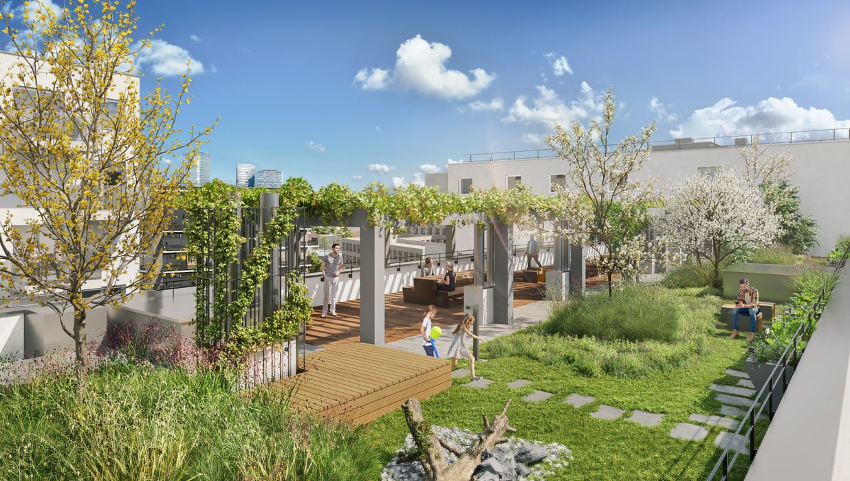 Einladende Sitzbereiche, Pergola-Überdachungen und ein wunderschöner Blick in den Park laden zum Verweilen ein. PARK FLATS vereint urbanes Wohnen und Natur auf ideale Weise – ein Ort, um das Leben in all seinen Facetten zu genießen.