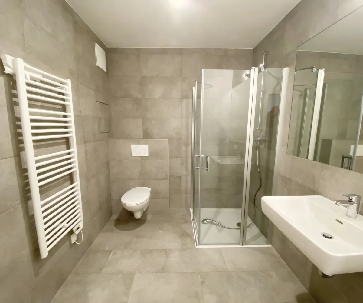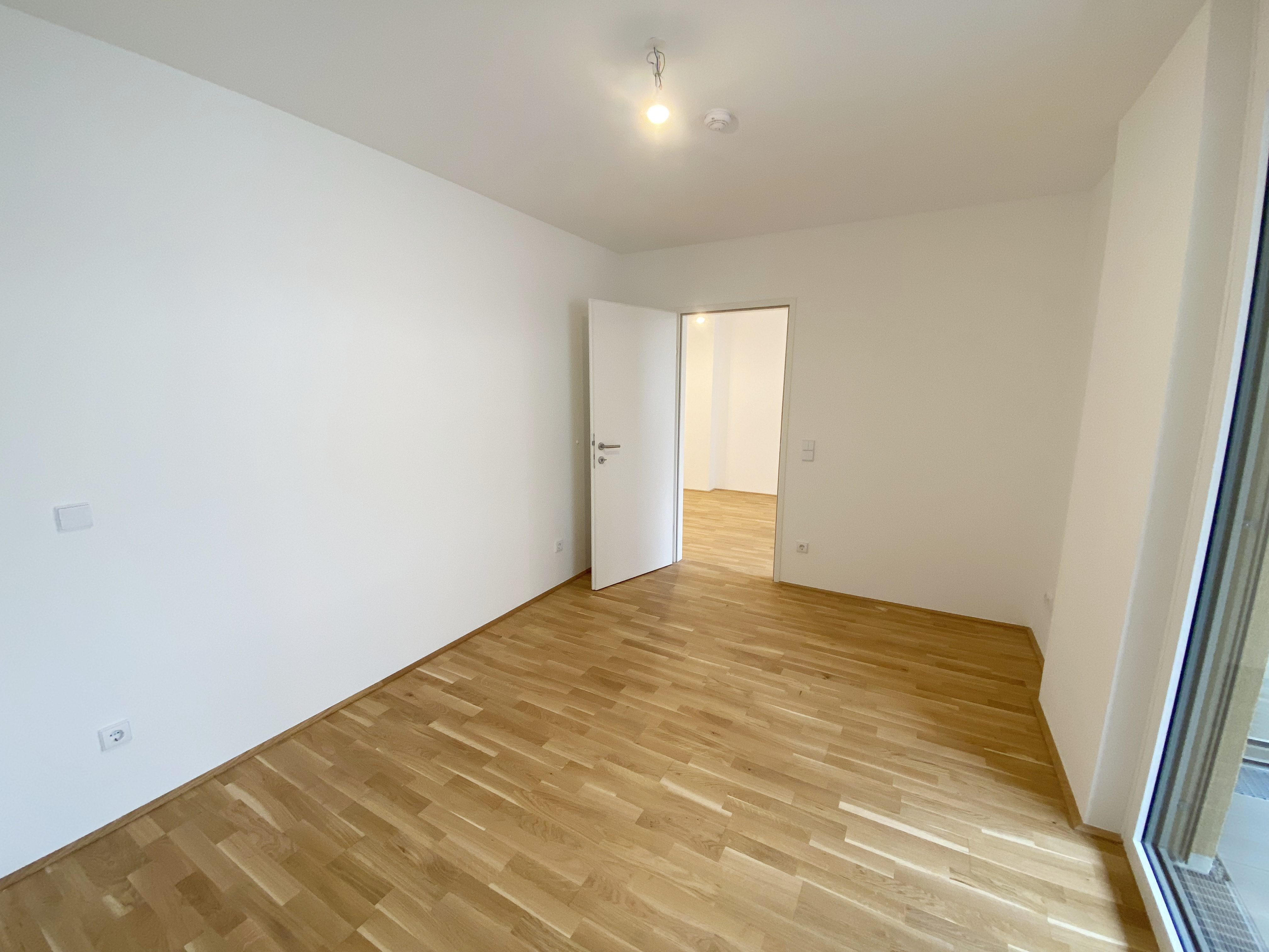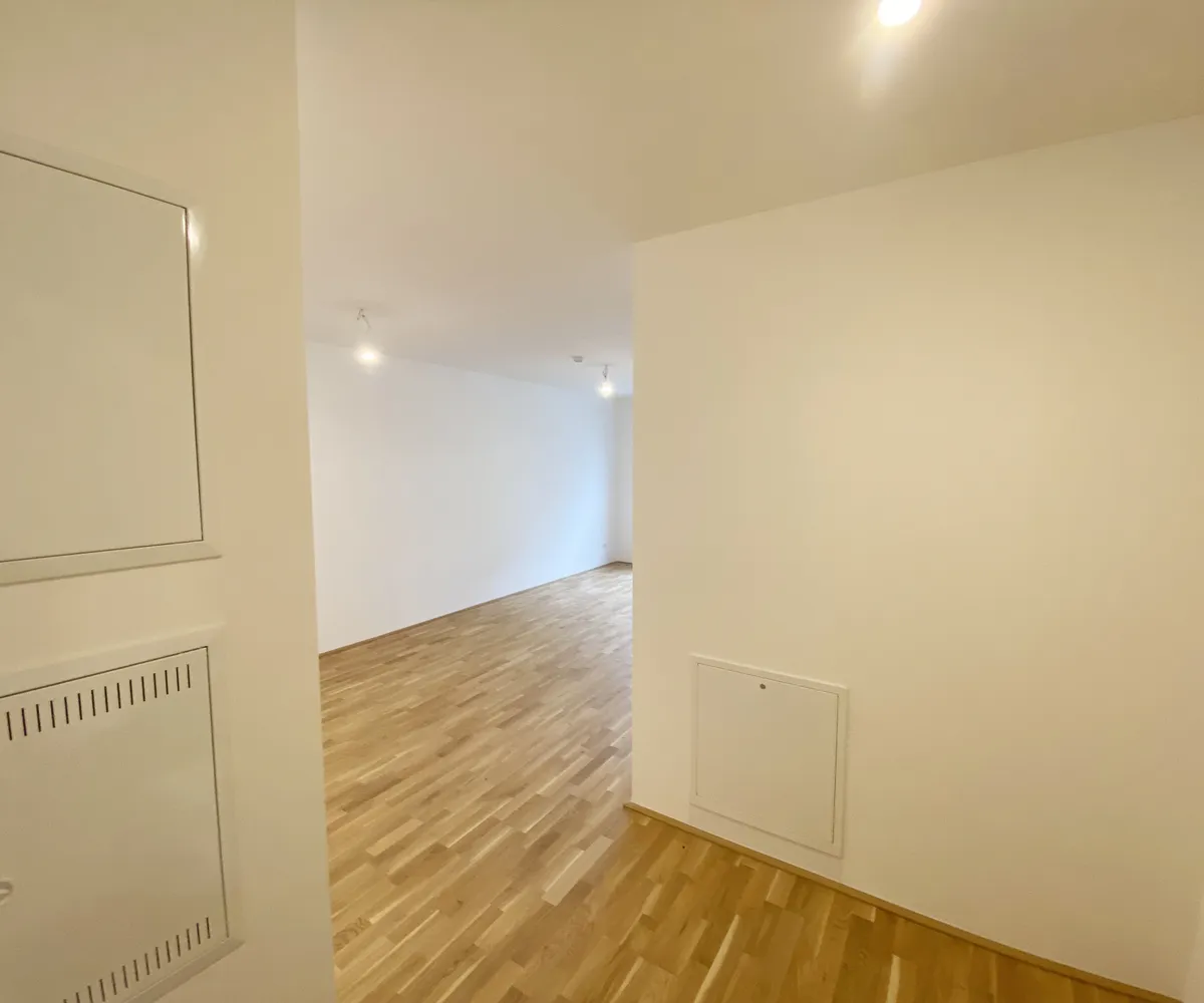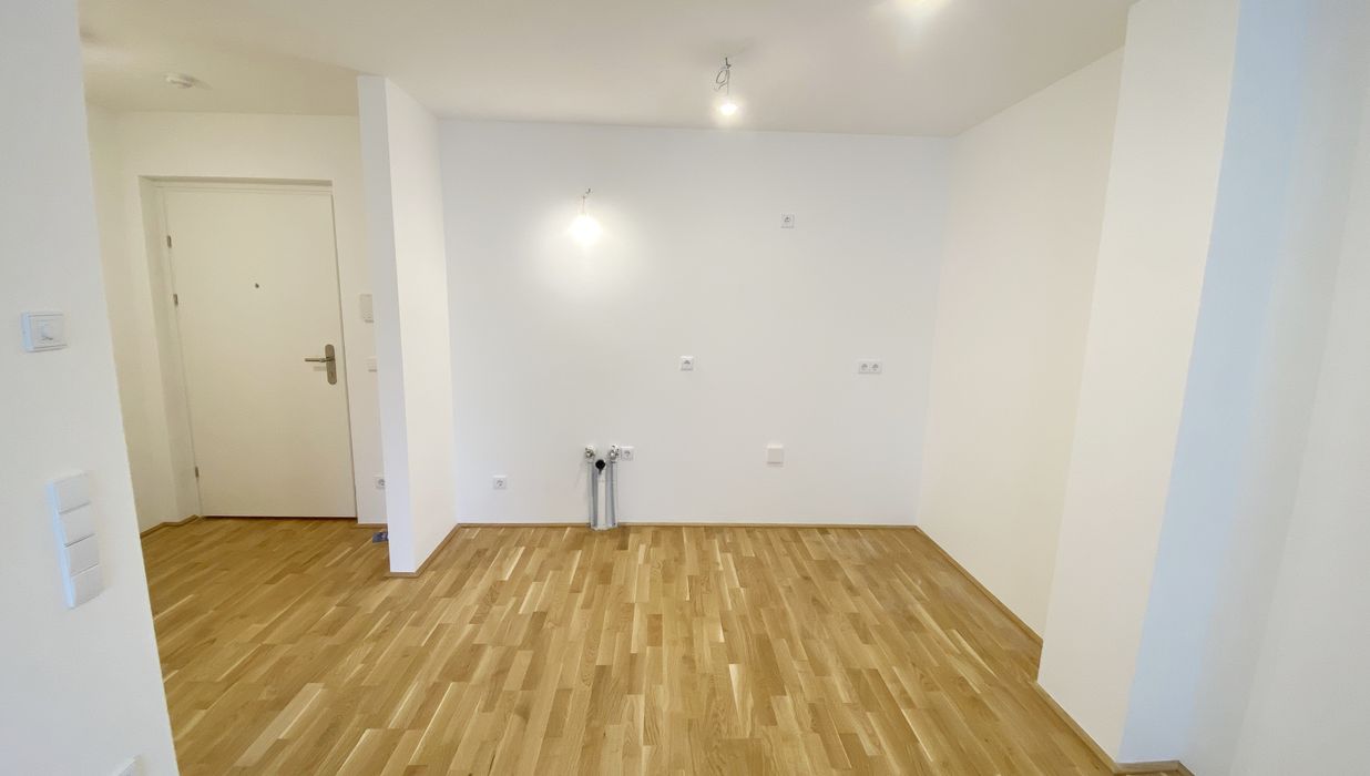 Diese helle Erstbezugswohnung überzeugt durch eine großzügige Raumaufteilung – hier ziehen Sie in ein komplett neues Zuhause ein. Der zentrale Wohnbereich ist offen gestaltet und bietet viel Platz für Wohnen, Essen und Kochen. Große Fenster sorgen für viel Tageslicht und eine angenehme Atmosphäre. Die Küche ist praktisch im Wohnraum integriert und wird in Kürze eingebaut. Das Schlafzimmer ist separat begehbar, ruhig und gut geschnitten. Von hier aus gelangen Sie direkt auf den Balkon – perfekt für frische Luft und kurze Auszeiten im Alltag. Das Badezimmer ist modern ausgestattet mit Dusche, Waschbecken und Handtuchheizkörper. Das Wohnhaus setzt auf nachhaltige Energiesparsysteme, darunter eine Photovoltaikanlage auf dem Dach, um den ökologischen Fußabdruck zu minimieren.