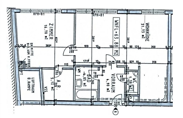 FAST FACTS WOHNUNG | MIETE | 1080 1. Stock mit Lift | Wohnfläche rund 63,88 m² | 2 Zimmer (Wohnküche + Schlafzimmer) | Toilette separat | Badezimmer mit Badewanne | Abstellraum | Waschküche | Kellerabteil | Zentralheizung | Nähe U6 Thaliastraße |