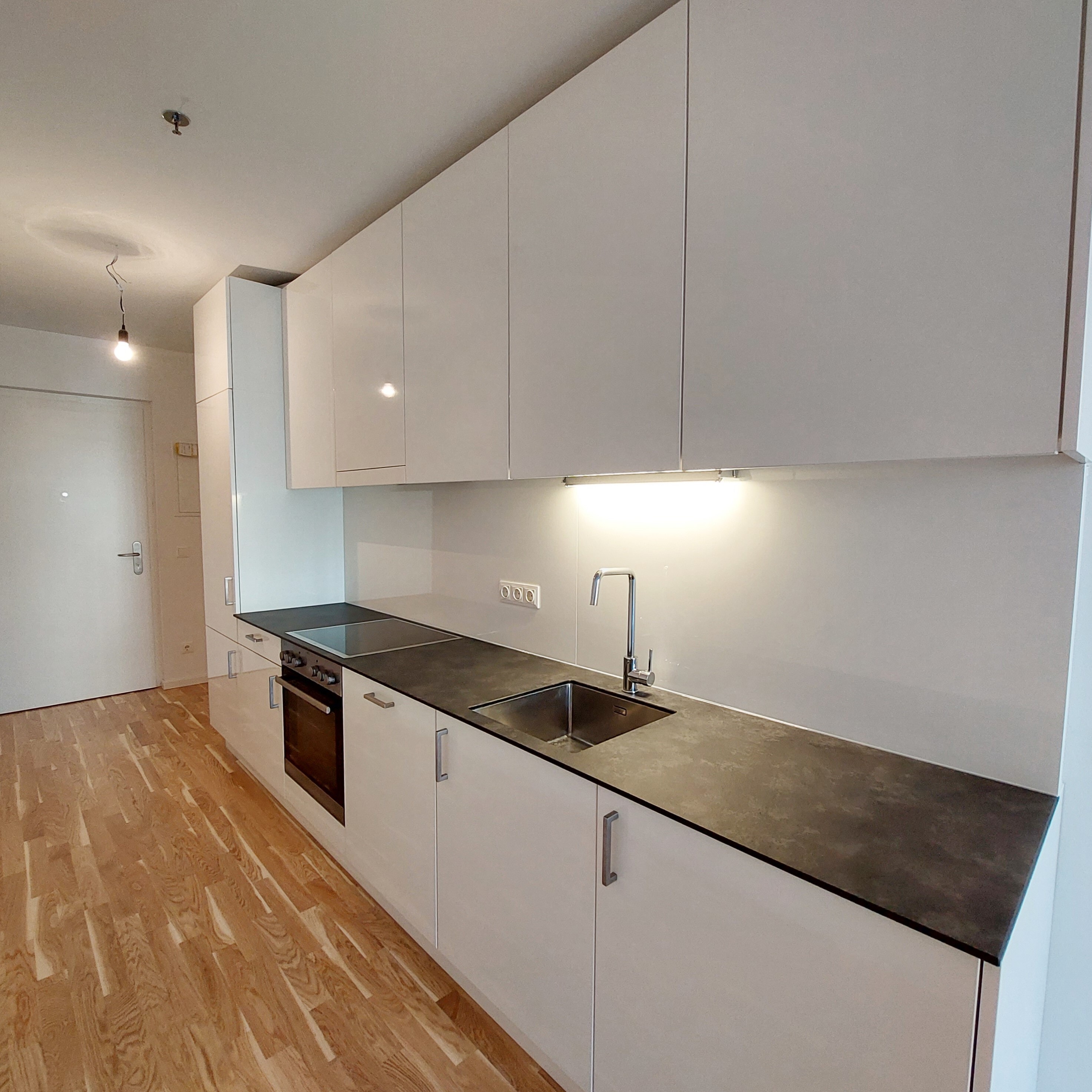 Die Wohnung selbst befindet sich in der 14. Etage und verfügt über einen großzügigen, gut aufgeteilten Wohnraum mit vollausgestatteter Küchenzeile, ein Badezimmer mit Dusche, eine separates WC, sowie einen Vorraum. Der nordseitig ausgerichtete Balkon rundet das Wohnerlebnis perfekt ab.