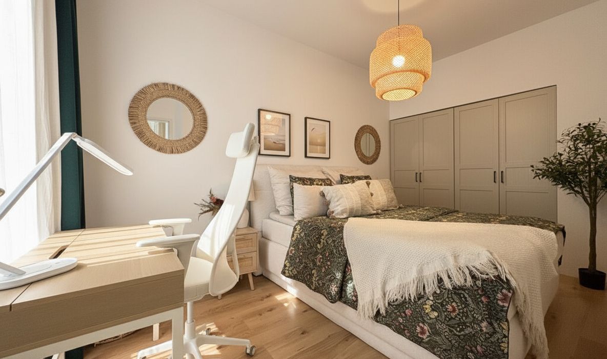 Schlafzimmer mit Home-Office-Bereich