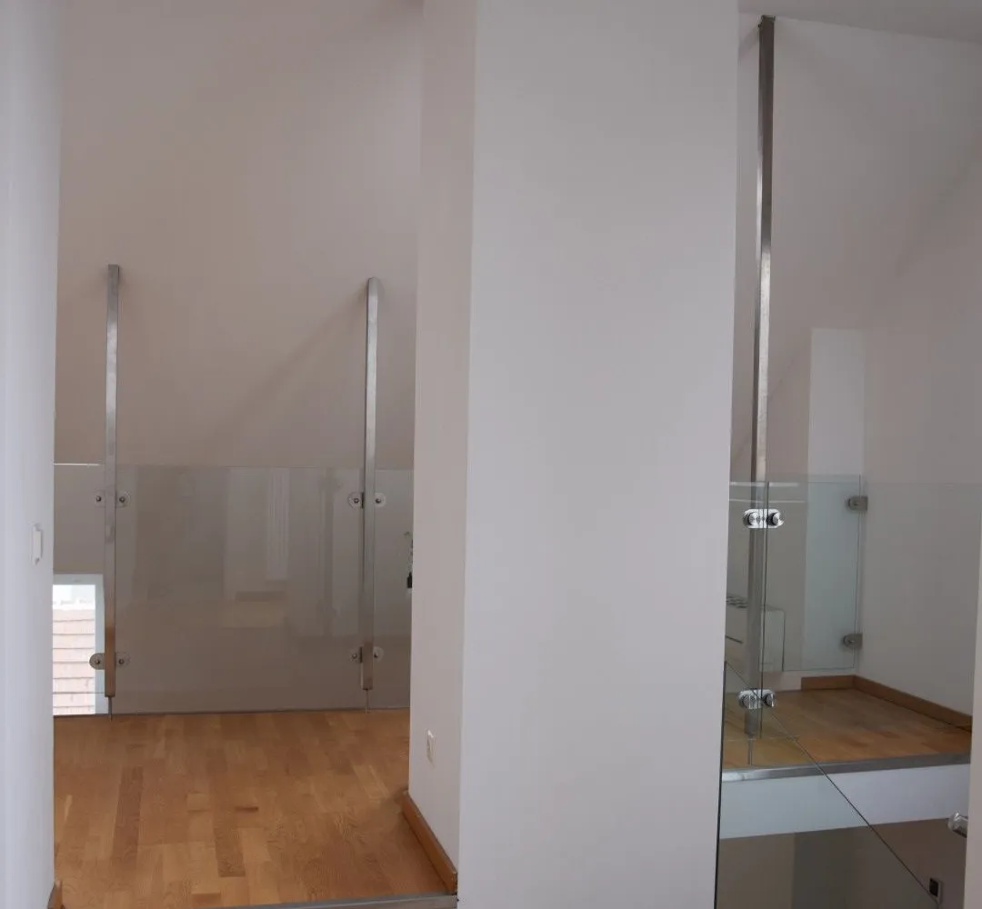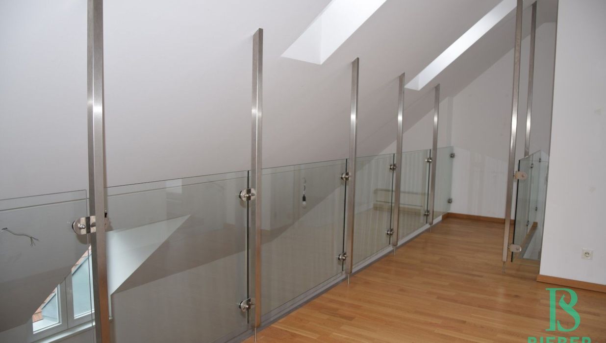 Die vielen, perfekt abgestimmten Glaselemente, wie Stiegengeländer, geben dieser Wohnung einen luftig leichten und vor allem sonnen- und lichtdurchfluteten Charakter!