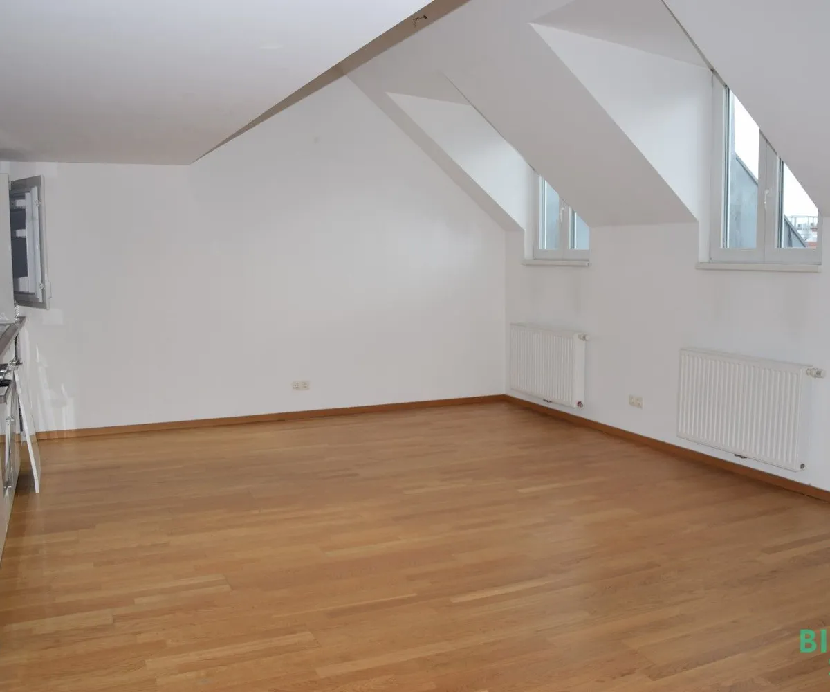 Über den stilvollen Hauseingang gelangt man über Stufen zum Lift, der in das Dachgeschoss (4. Stock) führt, in dem sich diese ca. 85m² große Wohneinheit befindet. Vom großzügigen Vorraum aus ist der herrliche, offen gehaltene Wohnraum mit der modernen Küche zu betreten. Ein Zimmer, ein Bad mit Wanne und Doppelwaschtisch sowie ein separates Gäste-WC sind auf dieser Ebene vorzufinden.