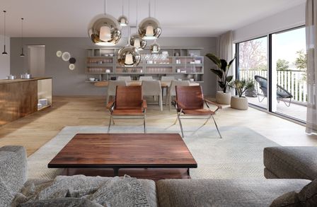 Alle vier Bautrakte bieten eine Vielzahl an Wohnungen unterschiedlicher Größe und Ausstattung, von gemütlichen Ein-Zimmer-Apartments bis hin zu geräumigen Penthouse-Wohnungen mit Terrassen und Blick auf die Stadt.
