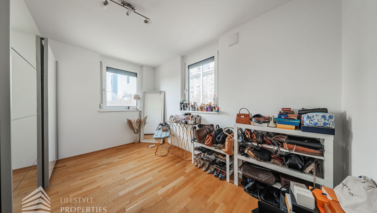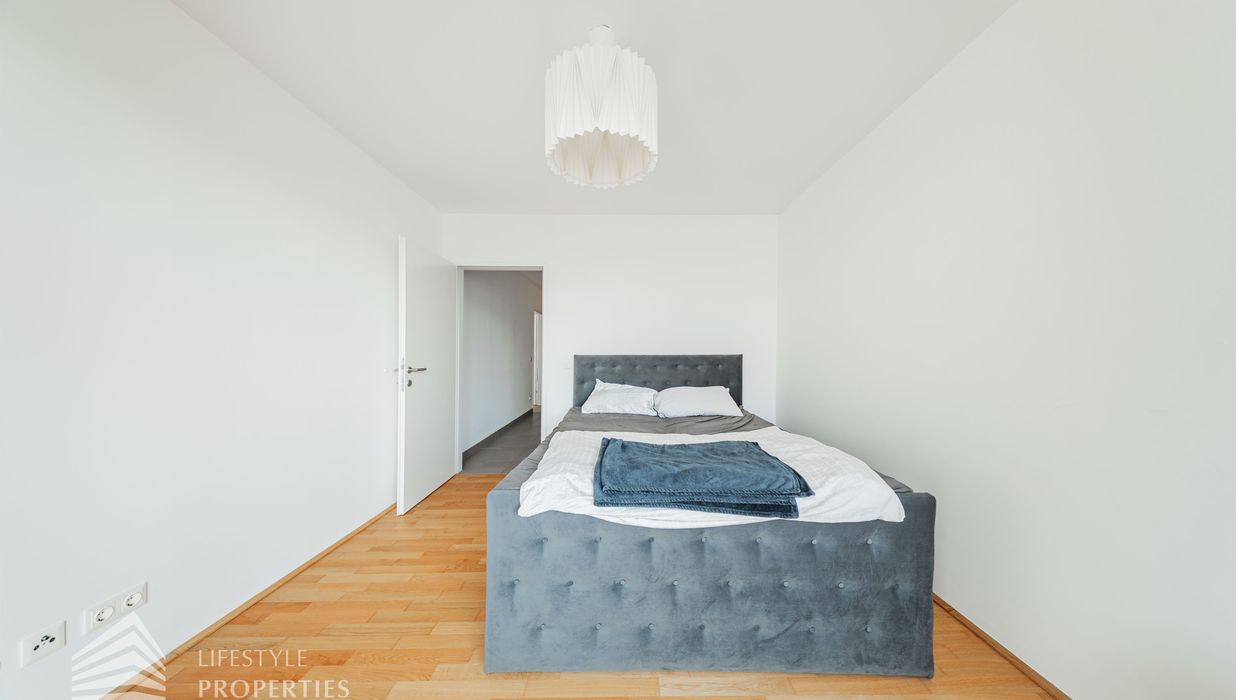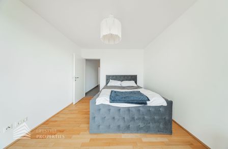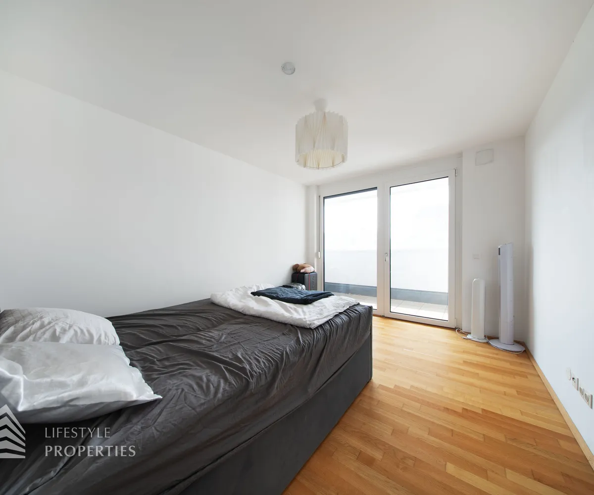 Direkt von der Wohnküche aus erschließt sich ein weiteres Zimmer mit ca. 11 m², das sich ideal als Schlafzimmer, Kinderzimmer, Gästezimmer oder Home-Office eignet. Ein größeres Schlafzimmer mit ca. 13 m² ist süd-westlich ausgerichtet, vom Vorraum aus begehbar und bietet ein besonderes Highlight: den direkten Zugang zu einer zweiten Loggia, welche mit einer Fläche von ca. 6 m² zusätzlichen Freiraum sowie eine angenehme Erweiterung des privaten Wohnbereichs schafft.
