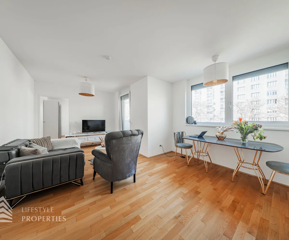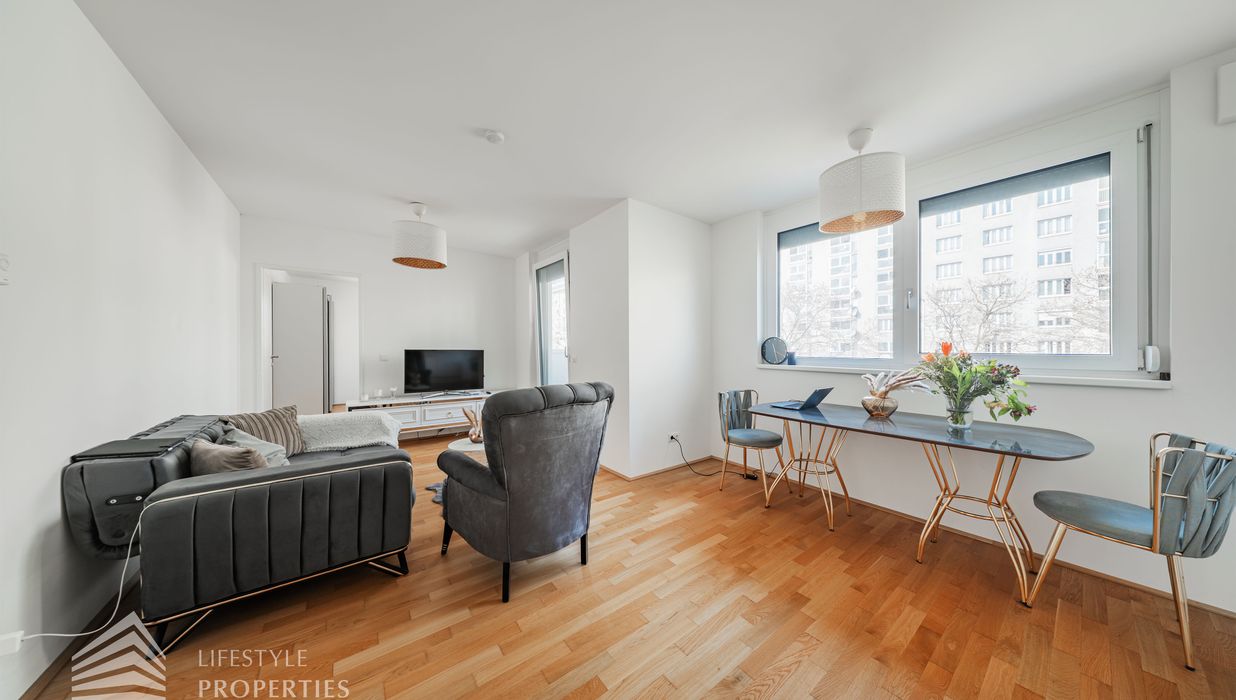 Nur wenige Gehminuten von der UNO-City entfernt befindet sich die Wohnung in einer gepflegten und modernen Wohnhausanlage und überzeugt durch eine durchdachte Raumaufteilung, helle Wohnräume sowie zwei großzügige Loggien, die den Wohnraum harmonisch ins Freie erweitern. Die Wohnung verfügt über eine Wohnfläche von ca. 64 m² und bietet ein modernes Wohnkonzept mit optimal genutztem Grundriss. Hochwertige Parkettböden, eine angenehme Fußbodenheizung sowie großzügige Fensterflächen schaffen ein helles und besonders angenehmes Wohnambiente.