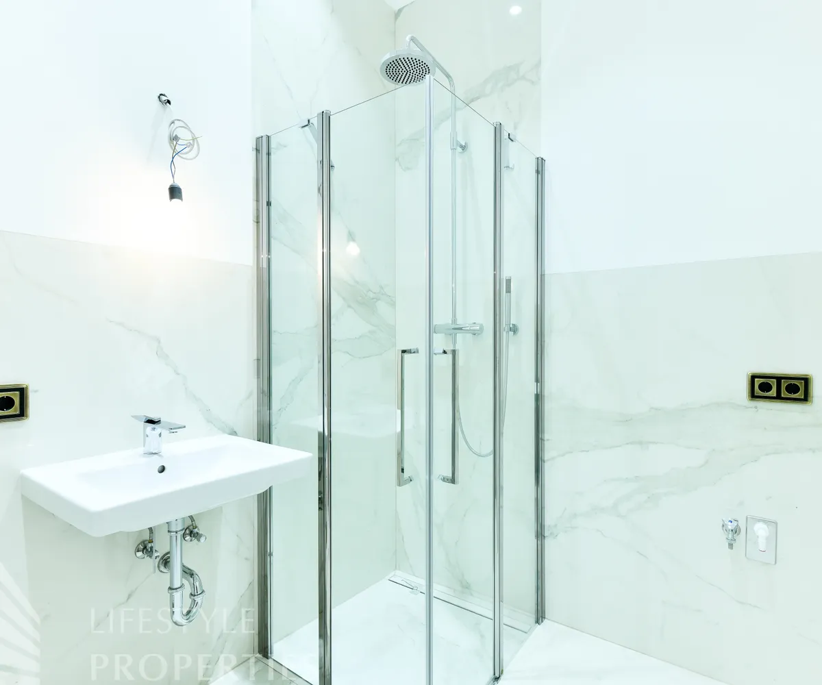 Diese traumhafte Wohnung besteht aus einer Fläche von ca. 53,15 m². Sie betreten den schönen Vorraum, in dem sich eine Gästetoilette befindet. Das Schlafzimmer ist mit einem en Suite Badezimmer ausgestattet. In den Nassräumen treffen Sie ausschließlich hochwertige Steinzeug Materialien sowie Hochglanzfliesen und modernste Sanitäreinrichtungen an. Ein geräumiges Wohnzimmer und ein schönes Esszimmer mit integrierter Küche runden das Wohlbefinden in dieser Wohnung ab.