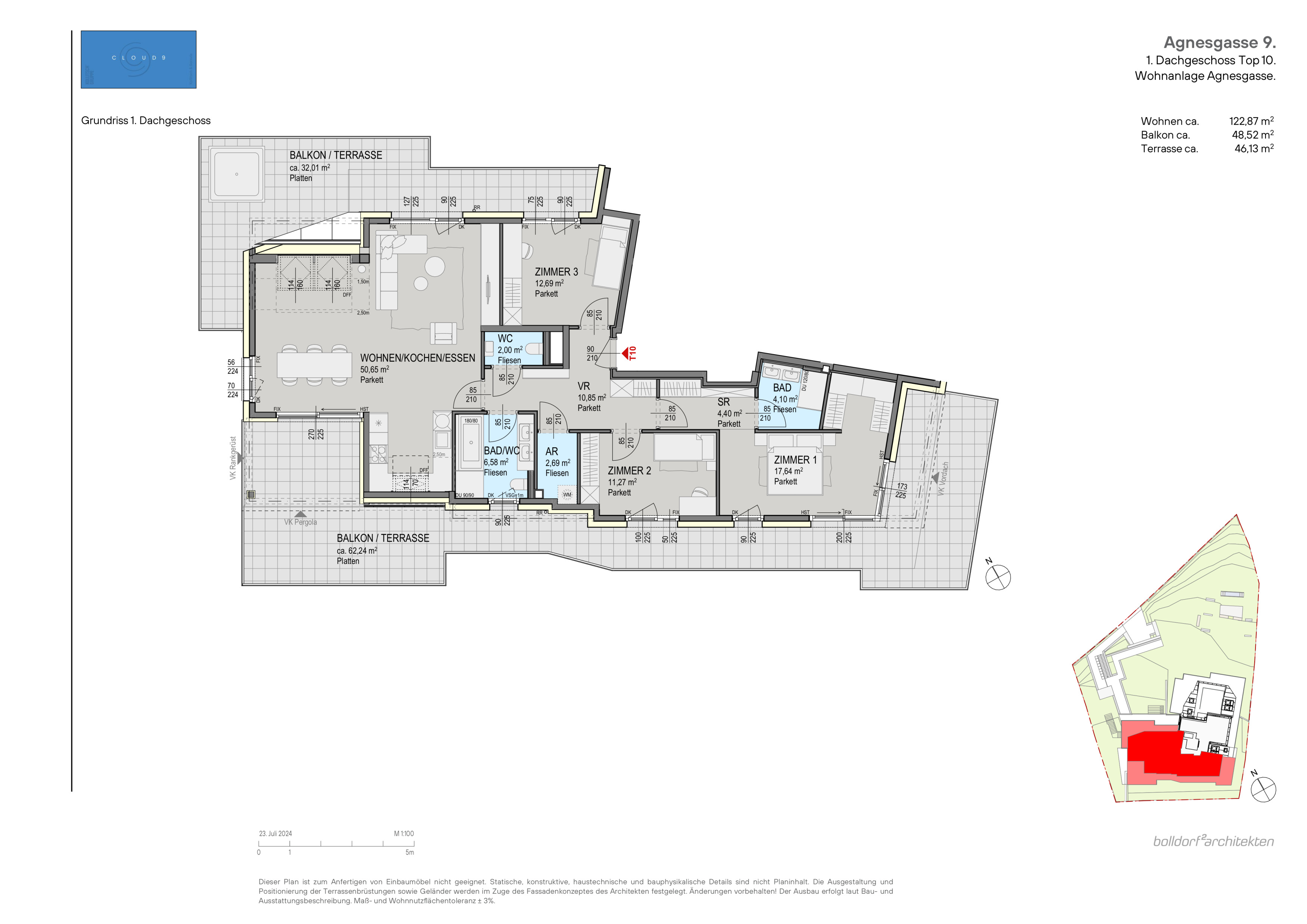 CLOUD 9 umfasst 11 hochwertig ausgestattete Eigentumswohnungen mit Wohnflächen von ca. 65 bis 169 m². Jede Einheit verfügt über großzügige Außenflächen – Eigengärten, Terrassen oder Balkone mit beeindruckenden Ausblicken. Die durchdachte Architektur sorgt für helle Räume, fließende Übergänge und maximale Privatsphäre. Ein automatisiertes Zufahrtssystem mit Kennzeichenerkennung öffnet die Tiefgarage mit 11 Stellplätzen – optional mit E-Ladestationen.