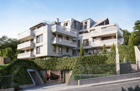 CLOUD 9 umfasst 11 hochwertig ausgestattete Eigentumswohnungen mit Wohnflächen von ca. 65 bis 169 m². Jede Einheit verfügt über großzügige Außenflächen – Eigengärten, Terrassen oder Balkone mit beeindruckenden Ausblicken. Die durchdachte Architektur sorgt für helle Räume, fließende Übergänge und maximale Privatsphäre. Ein automatisiertes Zufahrtssystem mit Kennzeichenerkennung öffnet die Tiefgarage mit 11 Stellplätzen – optional mit E-Ladestationen.