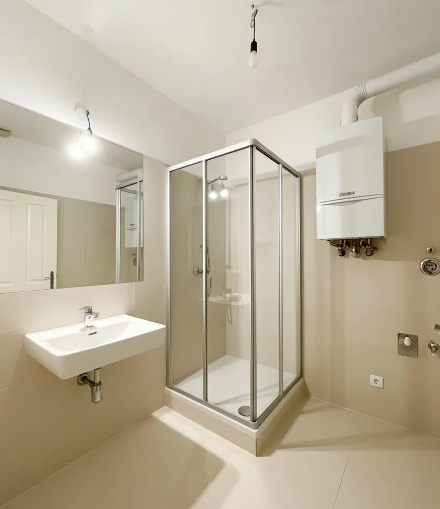 Im Zuge der Sanierung werden hochwertige Bodenbeläge sowie moderne Sanitärbereiche realisiert, wodurch ein zeitlos elegantes Wohnambiente entsteht.