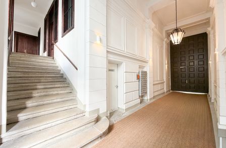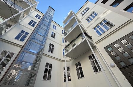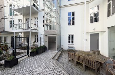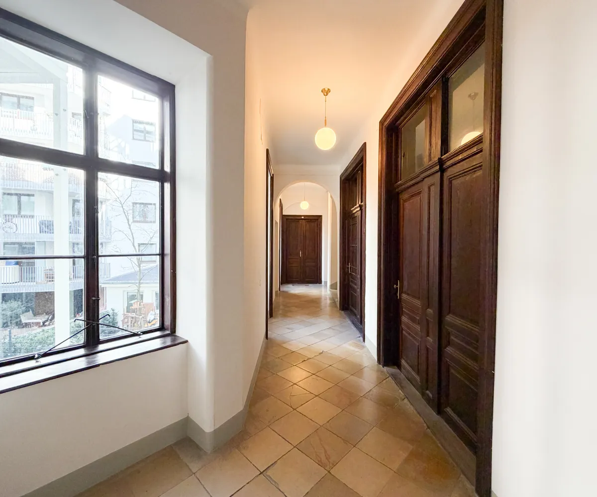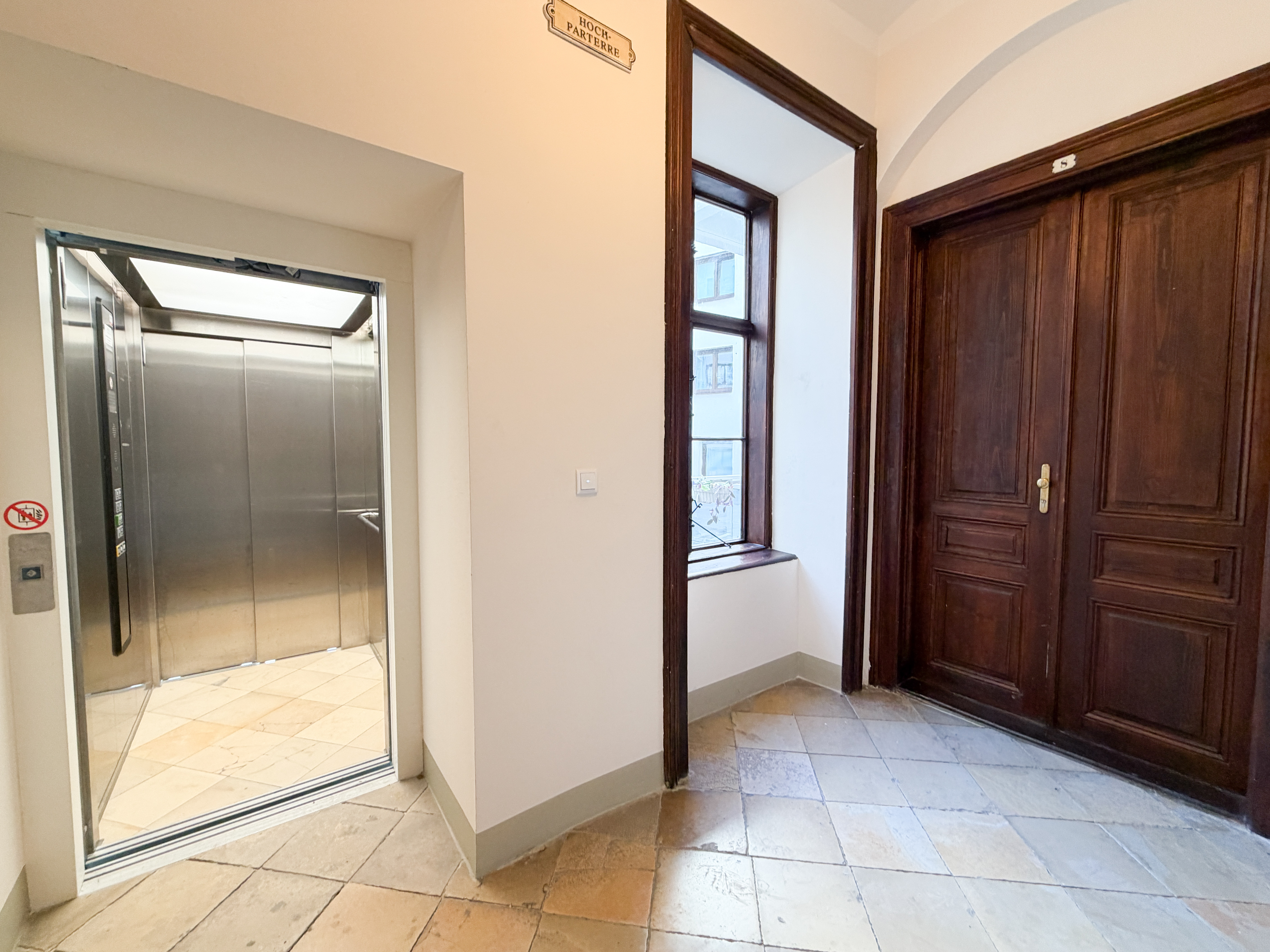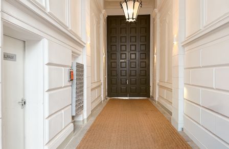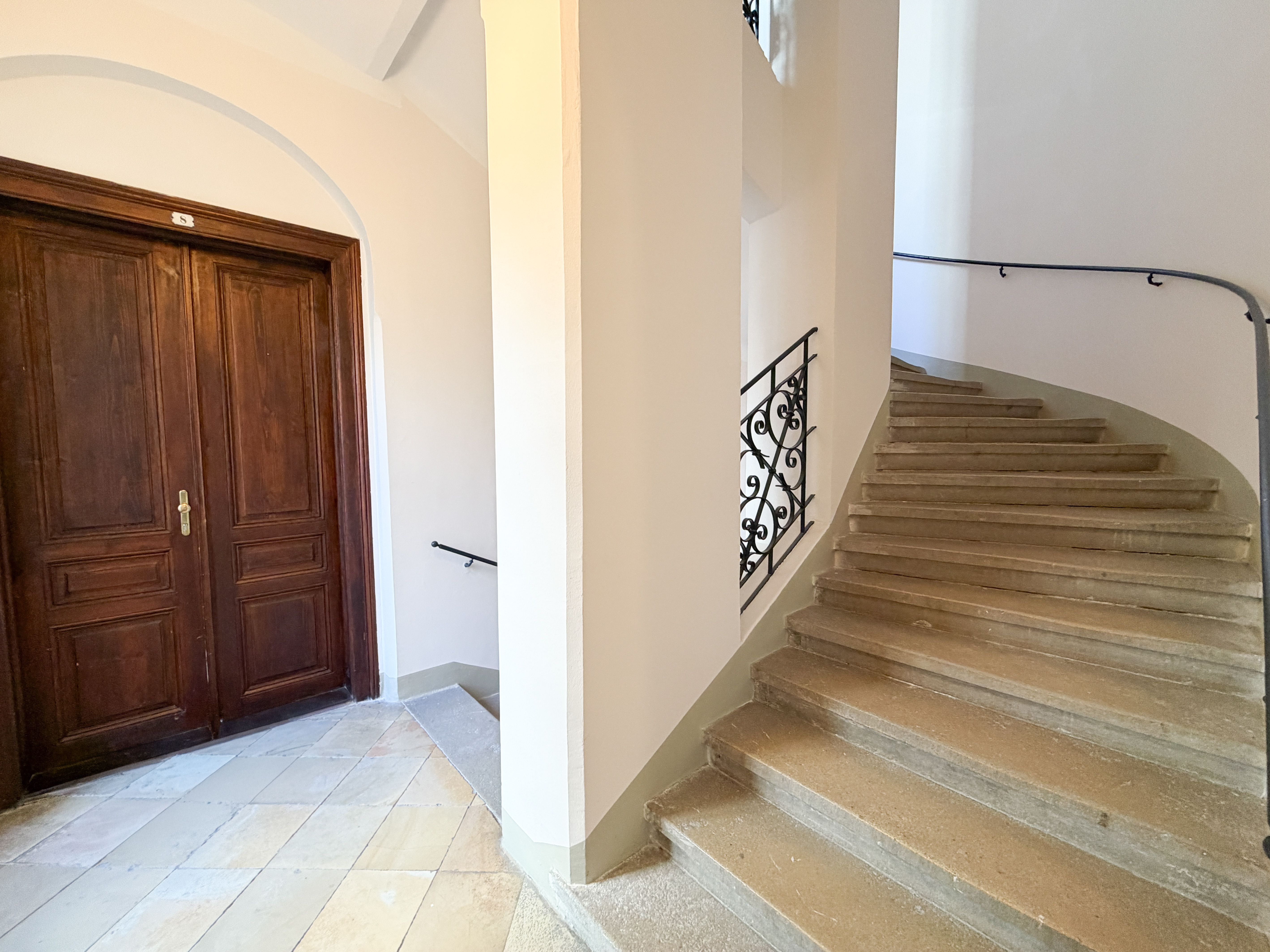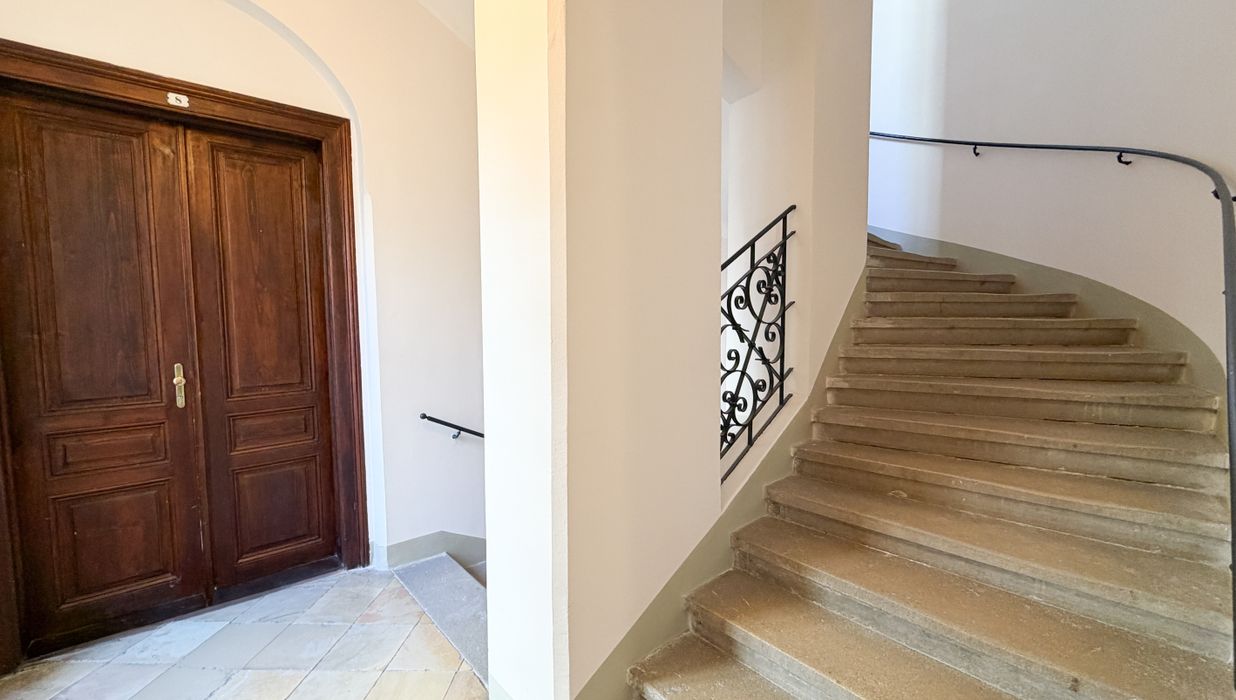Eingebettet in einen gepflegten Altbau mit klassischer Fassadengestaltung, empfängt Sie das Haus mit einem großzügig gestalteten Eingangsbereich , der durch seine Offenheit und das markante Tor einen bleibenden ersten Eindruck hinterlässt.