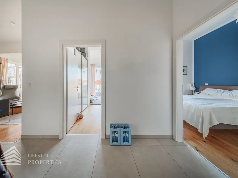 Der großzügig angelegte Innenhofgarten steht allen Bewohnern zur Verfügung. Das Haus selbst und die Wohnung befinden sich in gepflegtem Zustand.