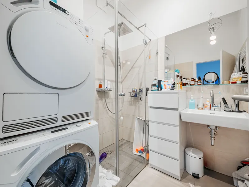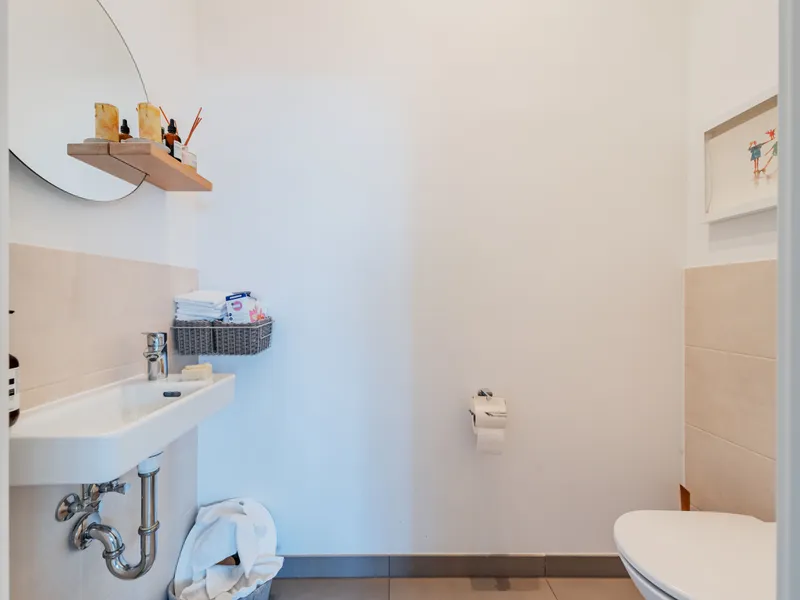 Ein Kinderwagen-/Fahrradabstellraum sowie die Waschküche sind für alle Bewohner des Hauses nutzbar.