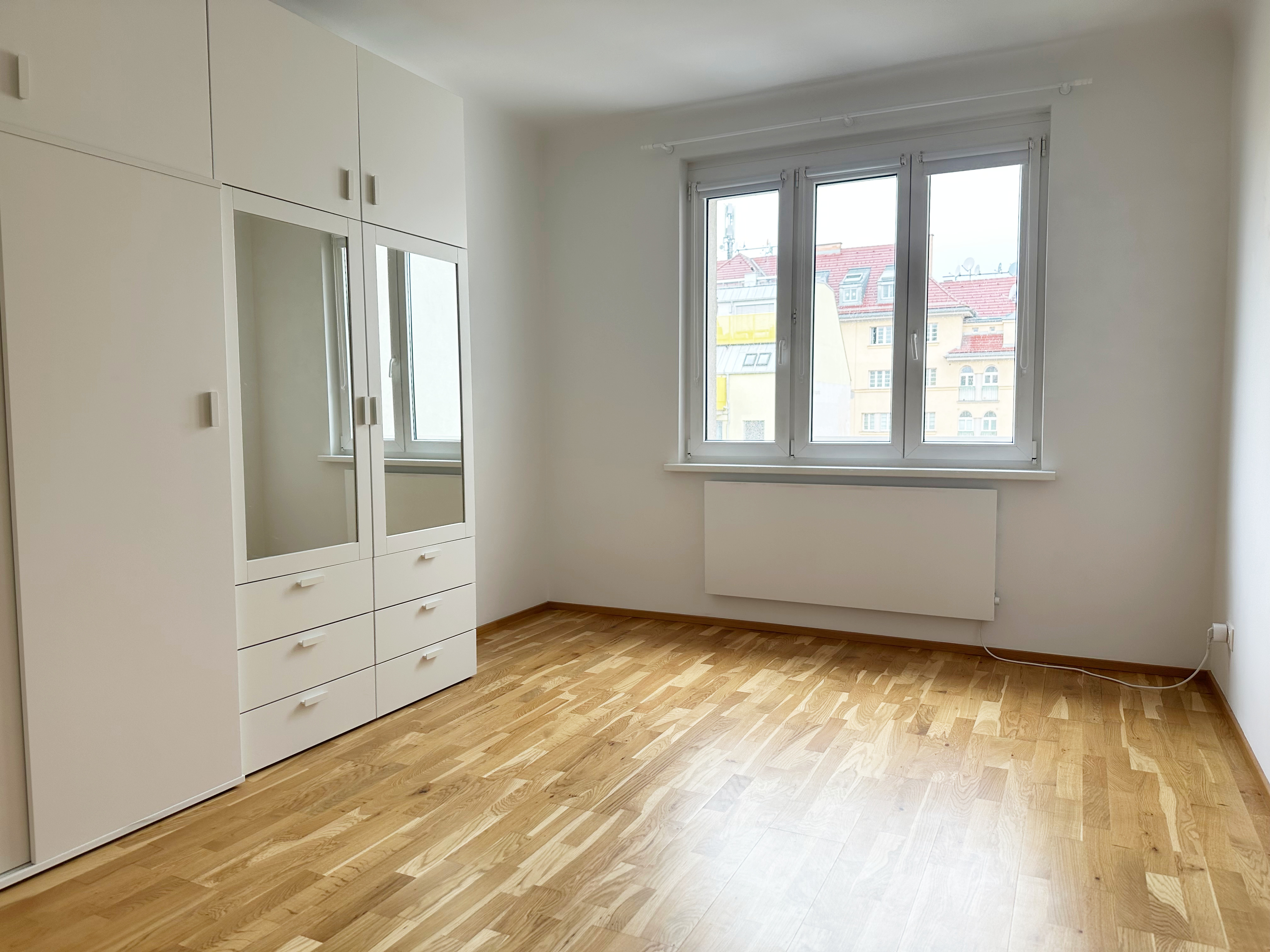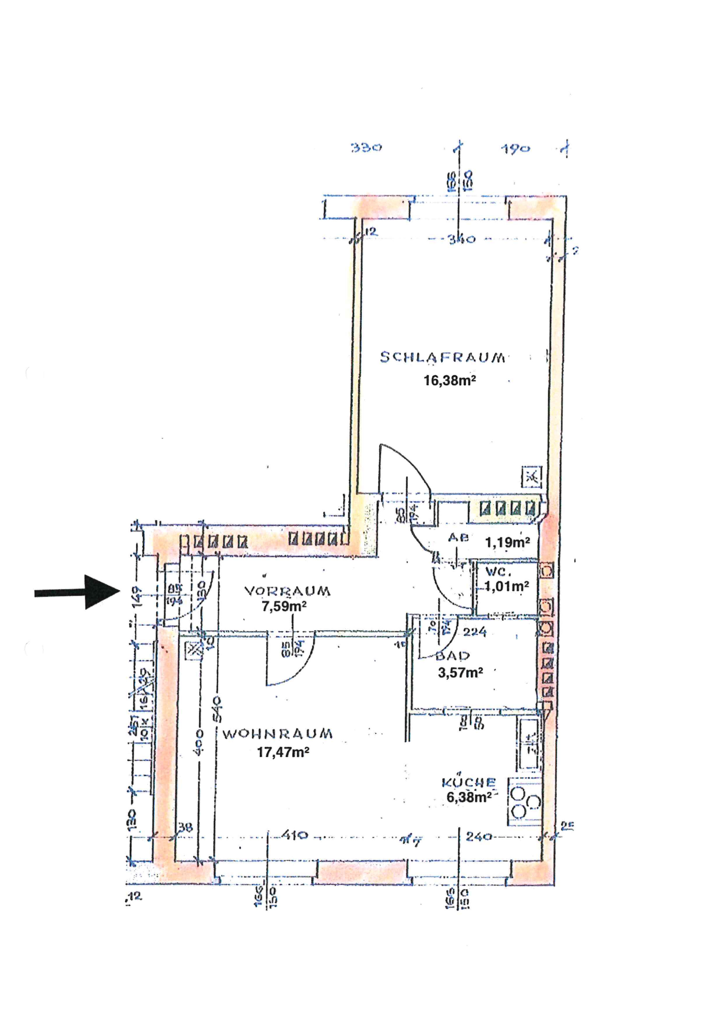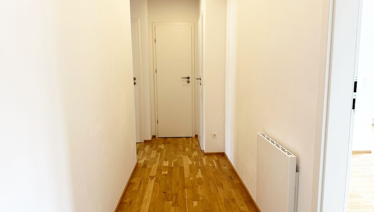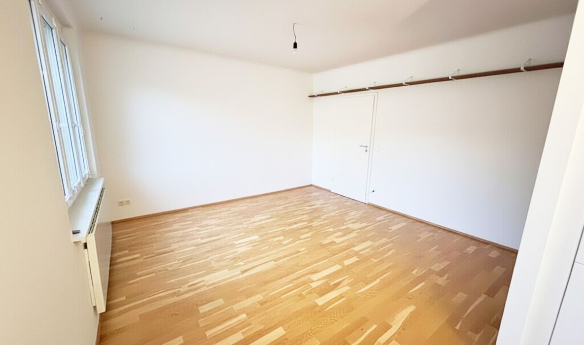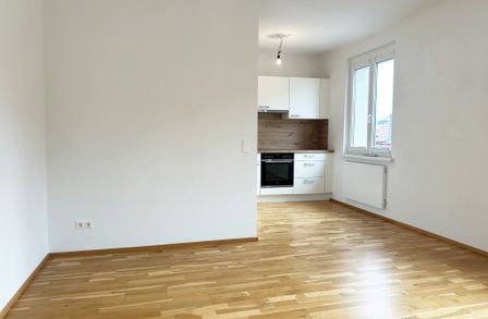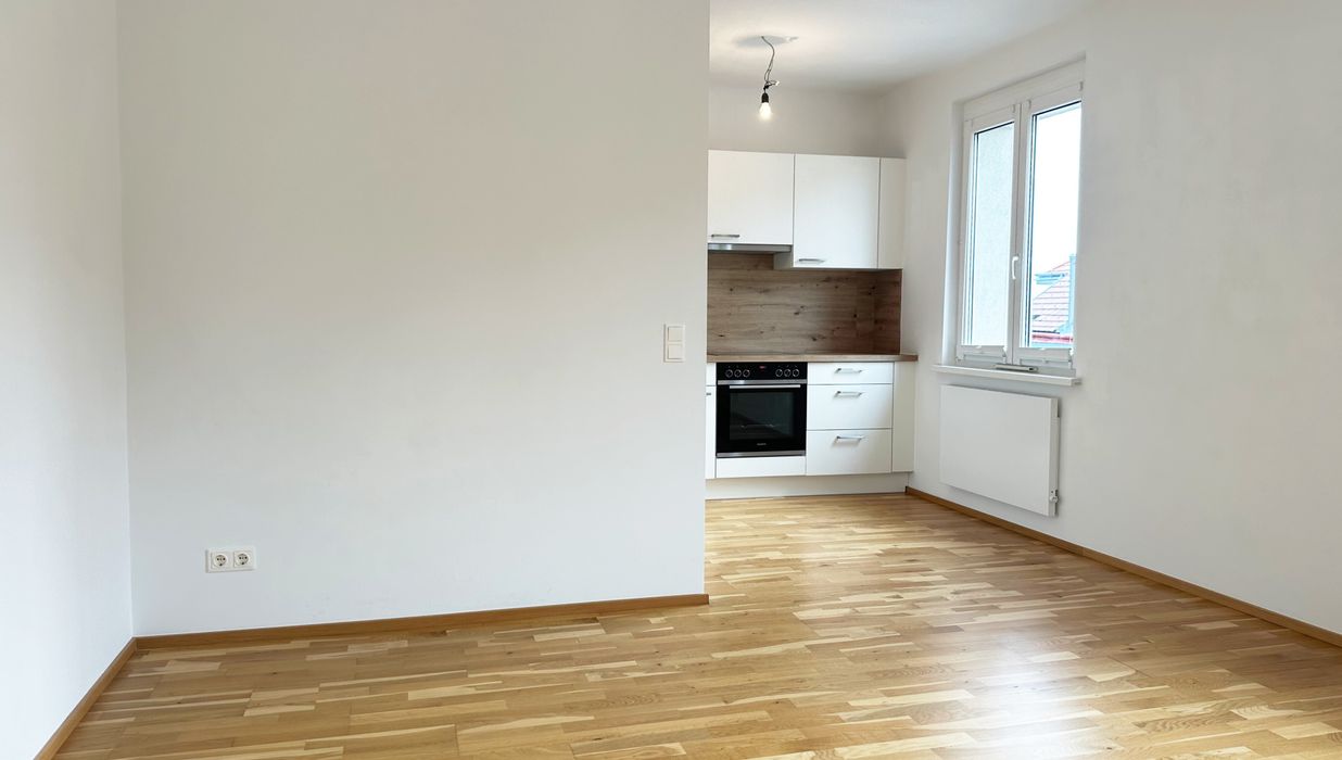 Die Wohnfläche gliedert sich in eine großzügige Wohnküche, ein ruhiges Schlafzimmer, einen praktischen Abstellraum, ein Badezimmer, ein separates WC sowie einen einladenden Vorraum.