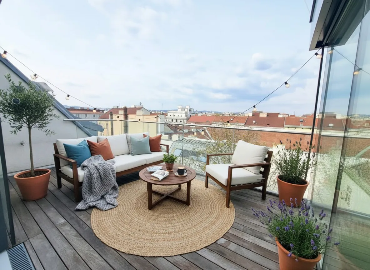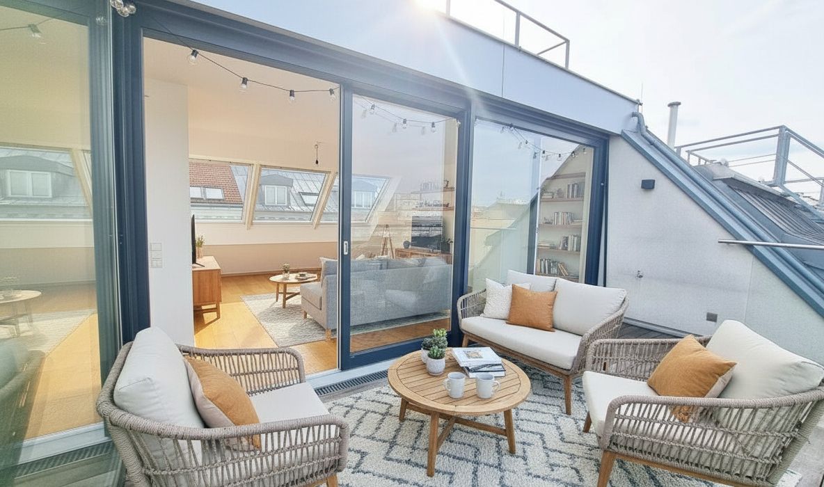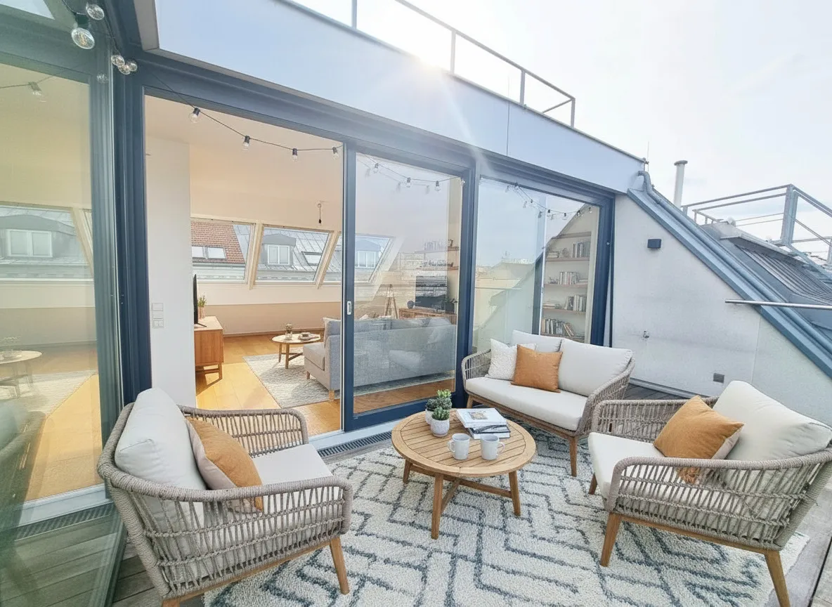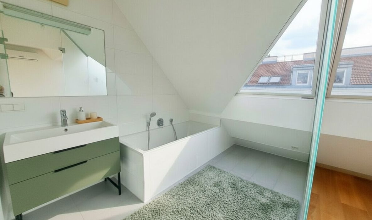 Bereits beim Betreten der Wohnung spürt man die besondere Atmosphäre: Großzügige, raumhohe Fensterflächen sorgen für ein lichtdurchflutetes Wohnambiente und schaffen fließende Übergänge zwischen Innen und Außen. Die moderne Holz-Alu-Fensterkonstruktion sowie Dachflächenfenster garantieren nicht nur optimale Belichtung, sondern auch ein angenehmes Wohnklima.