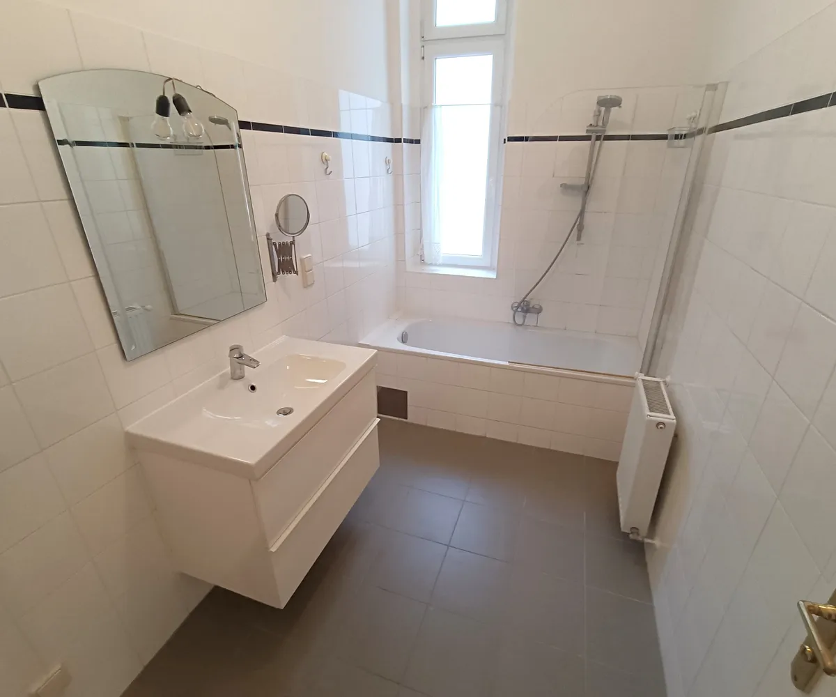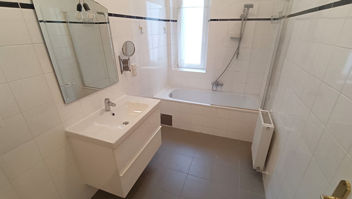 Vom Vorraum aus erreichen Sie sämtliche Zimmer der Wohnung. Direkt im Eingangsbereich befindet sich die separate Toilette mit Fenster in den Innenhof und auch das Badezimmer ist eine wahre Ruheoase - Badewanne mit Duschtrennwand, Waschmaschinen-Anschluss und Waschbecken lassen hier keine Wünsche offen.