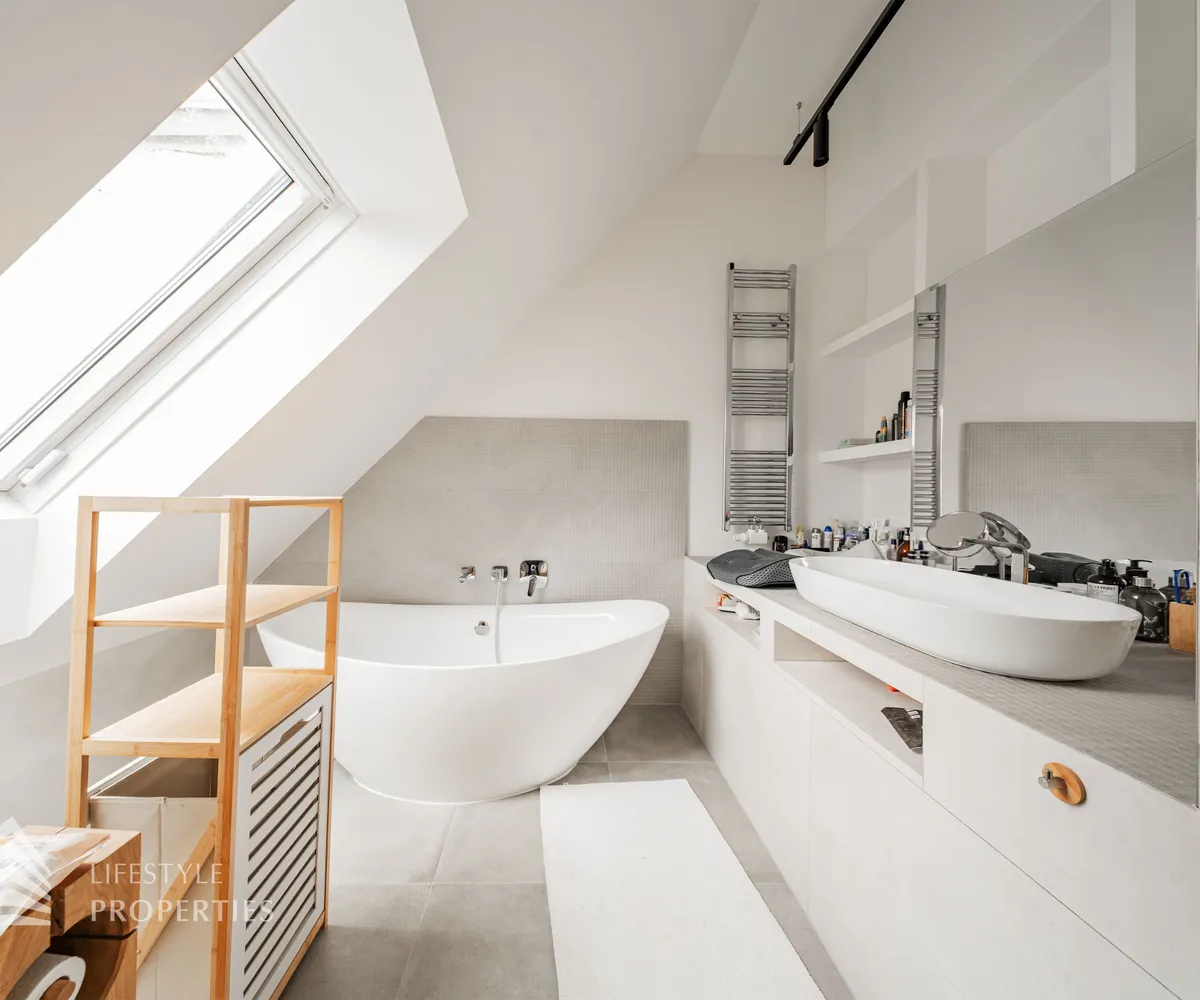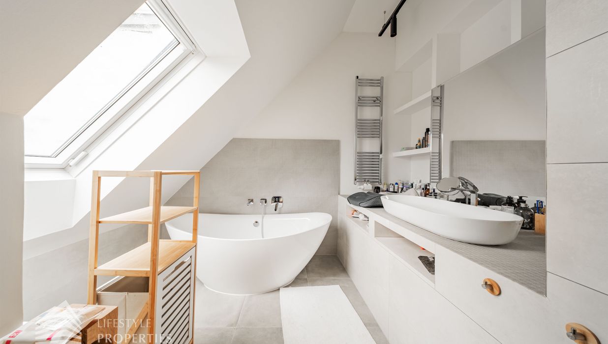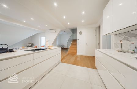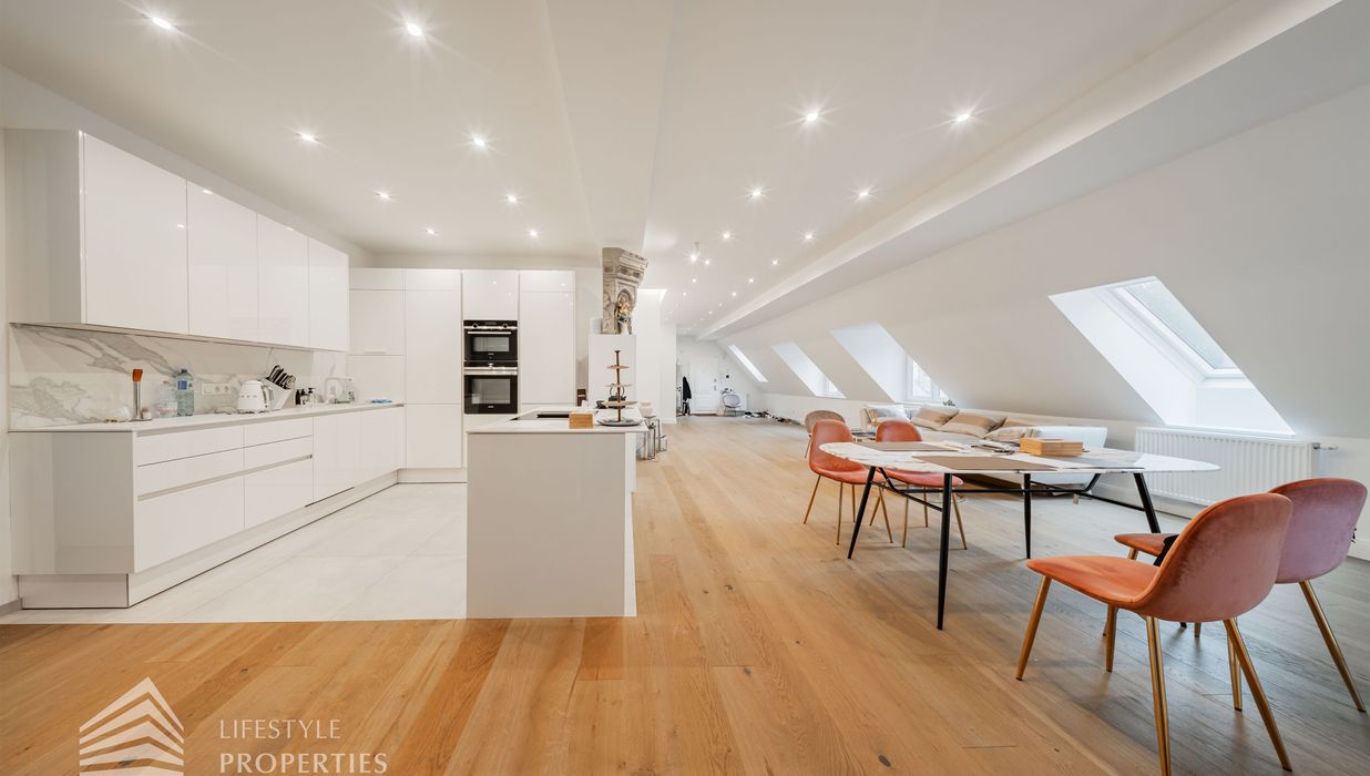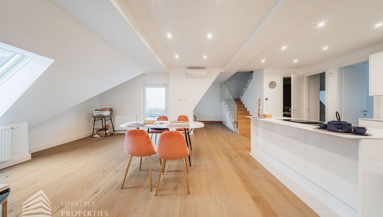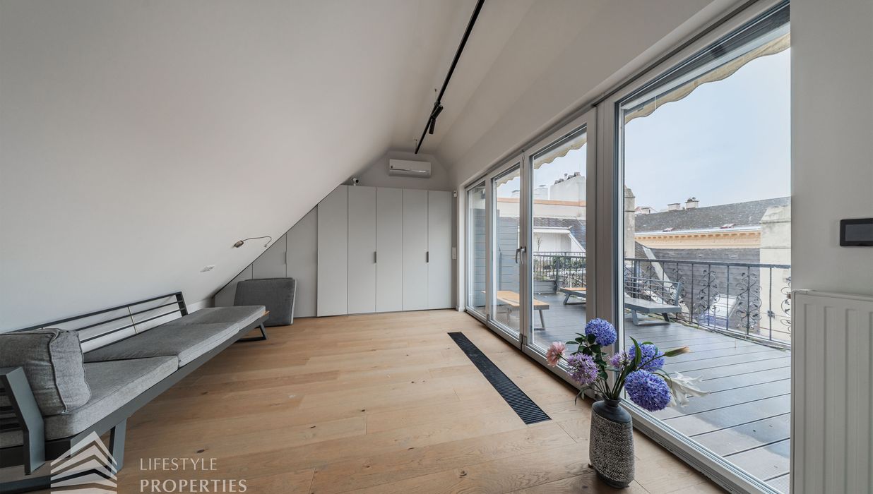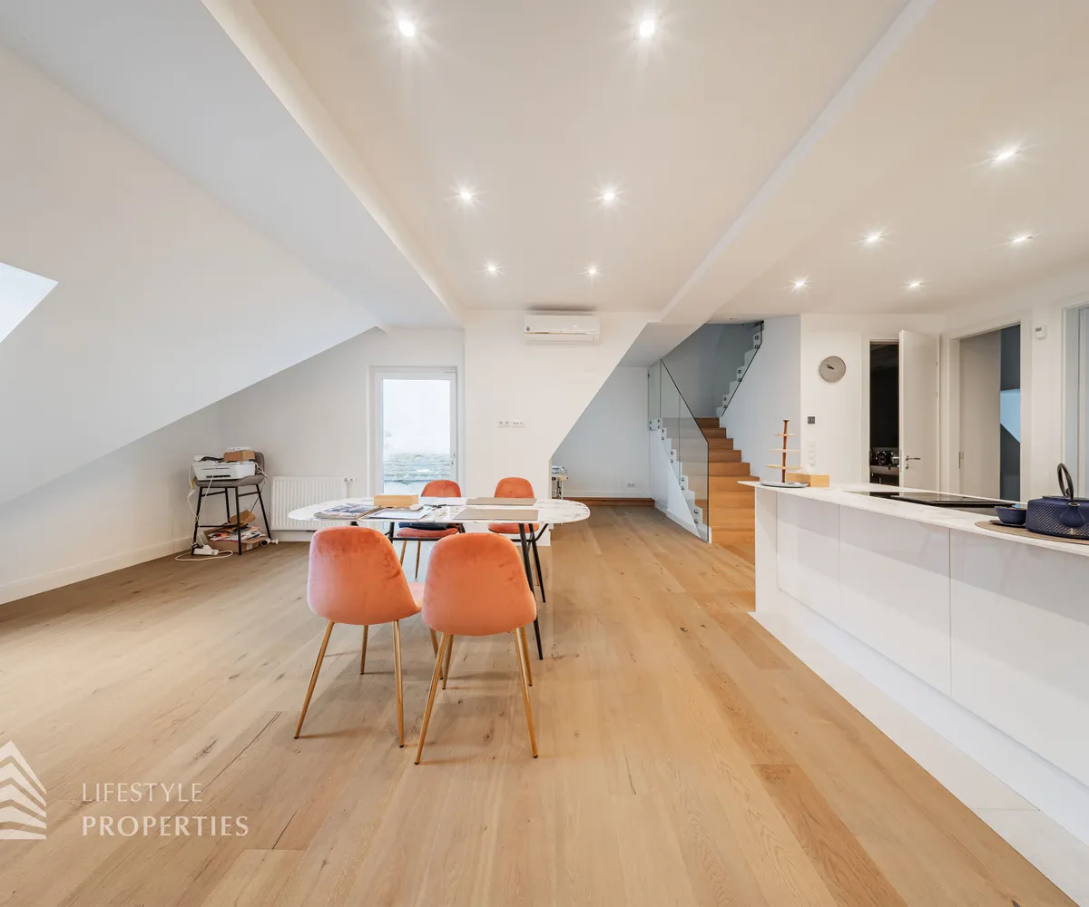 Die traumhafte Wohnung befindet sich im 1. und 2. Dachgeschoss eines gepflegten Altbaus und erstreckt sich über eine großzügige Wohnfläche von ca. 175 m². Diese teilt sich auf in eine Wohnküche, 3 Zimmer, 2 Badezimmer, ein Gäste-WC sowie einen praktischen Abstellraum. Eine Terasse sowie ein charmanter Balkon runden das Angebot perfekt ab. In den Wohnräumen wurde edles Parkett verlegt, die Nassräume sind mit modernen Fliesen ausgestattet. Beheizt wird mittels Gasetagenheizung. Eine kühle Atmosphäre an warmen Sommertagen garantiert die installierte Klimaanlage.