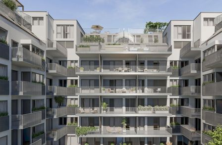In einer verkehrsberuhigten Sackgasse und direkt am Arik-Brauer-Park gelegen entstehen 150 hochwertige Eigentumswohnungen mit Wohnflächen von ca. 30 m² bis 130 m², die für unterschiedlichste Lebensbedürfnisse und Wohnkonzepte ausgelegt sind. Die Wohnungen bieten attraktive Extras wie private Gärten, Balkone, Loggien und eine beeindruckende Panorama-Terrasse, die einen atemberaubenden 360° Panoramablick über Wien eröffnet. Mit großzügigen Raumhöhen schaffen wir ein offenes und luftiges Wohngefühl. Darüber hinaus stehen Tiefgaragenstellplätze zur Verfügung und moderne Energiekonzepte, wie Photovoltaik und Fernwärme, garantieren eine nachhaltige und effiziente Energieversorgung. Hier wohnen Sie stilvoll, zukunftsorientiert und überaus komfortabel.