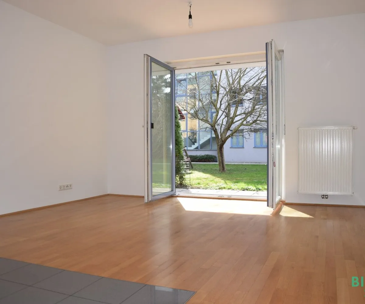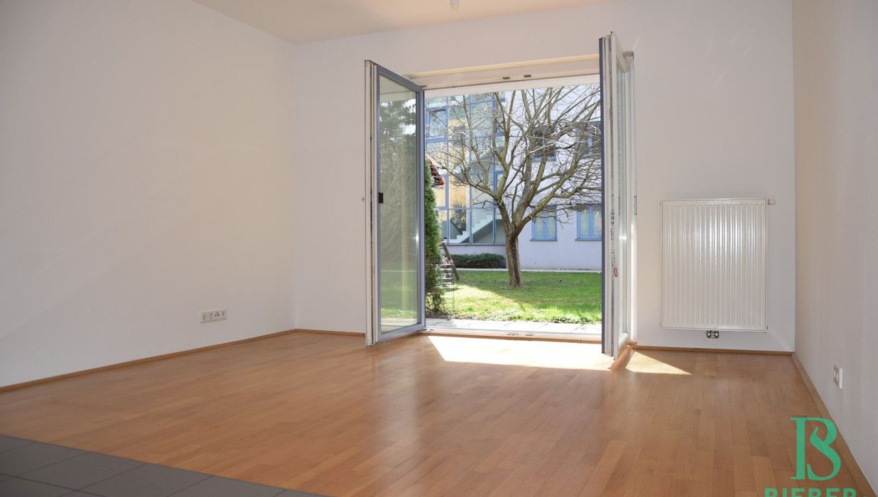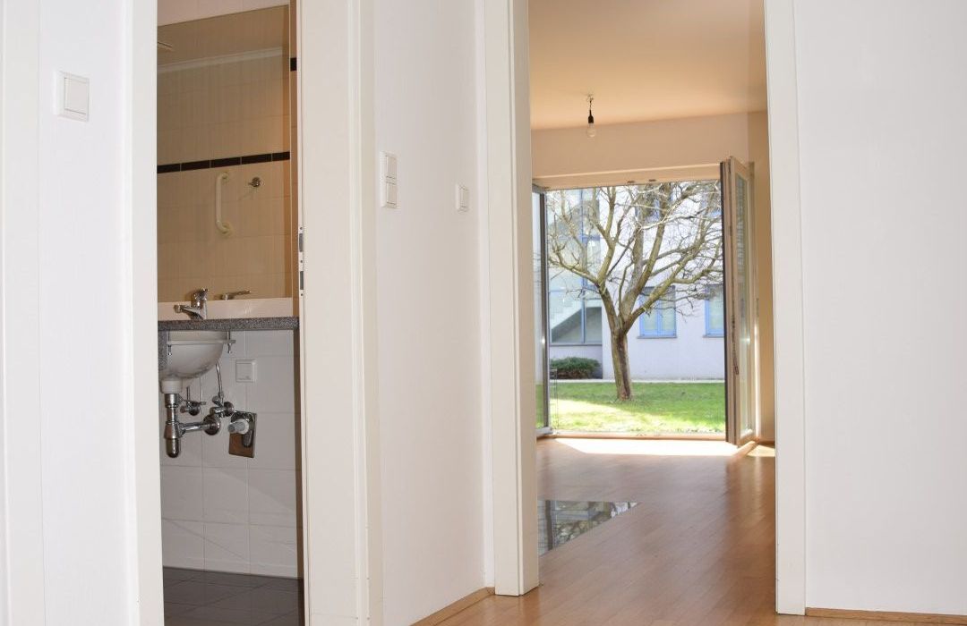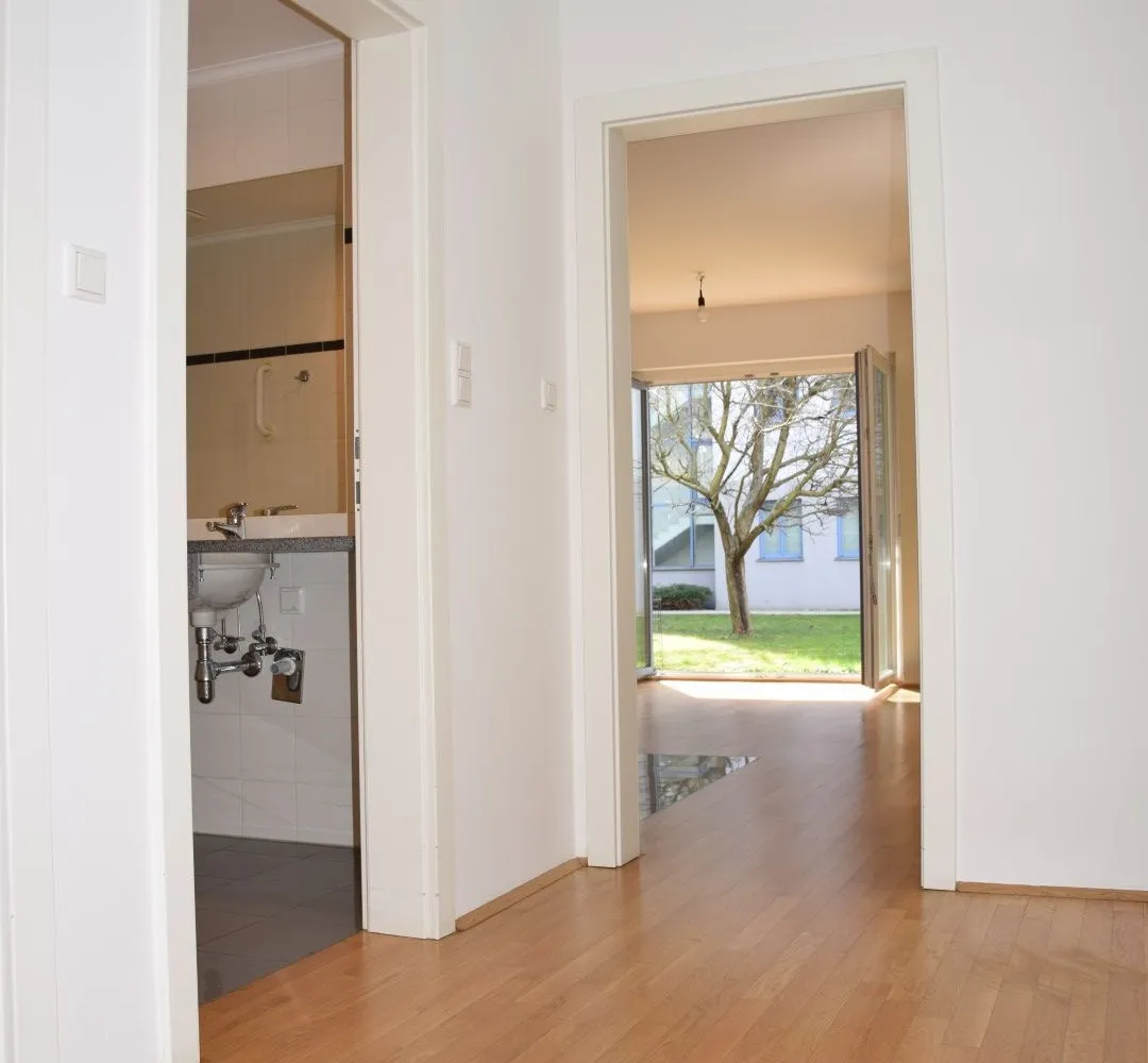 Im Erdgeschoss gelegen befinden sich auf einer Wohnfläche von ca. 53m² ein Wohnraum mit offengehaltener Küche, ein Zimmer, ein Vorraum, ein Abstellraum, ein Bad mit Wanne und ein separates WC. Vom Wohnraum und dem Zimmer aus ist die ca. 7m² große, nach Süden gerichtete Terrasse zu betreten, die in den Gemeinschaftsgarten übergeht.