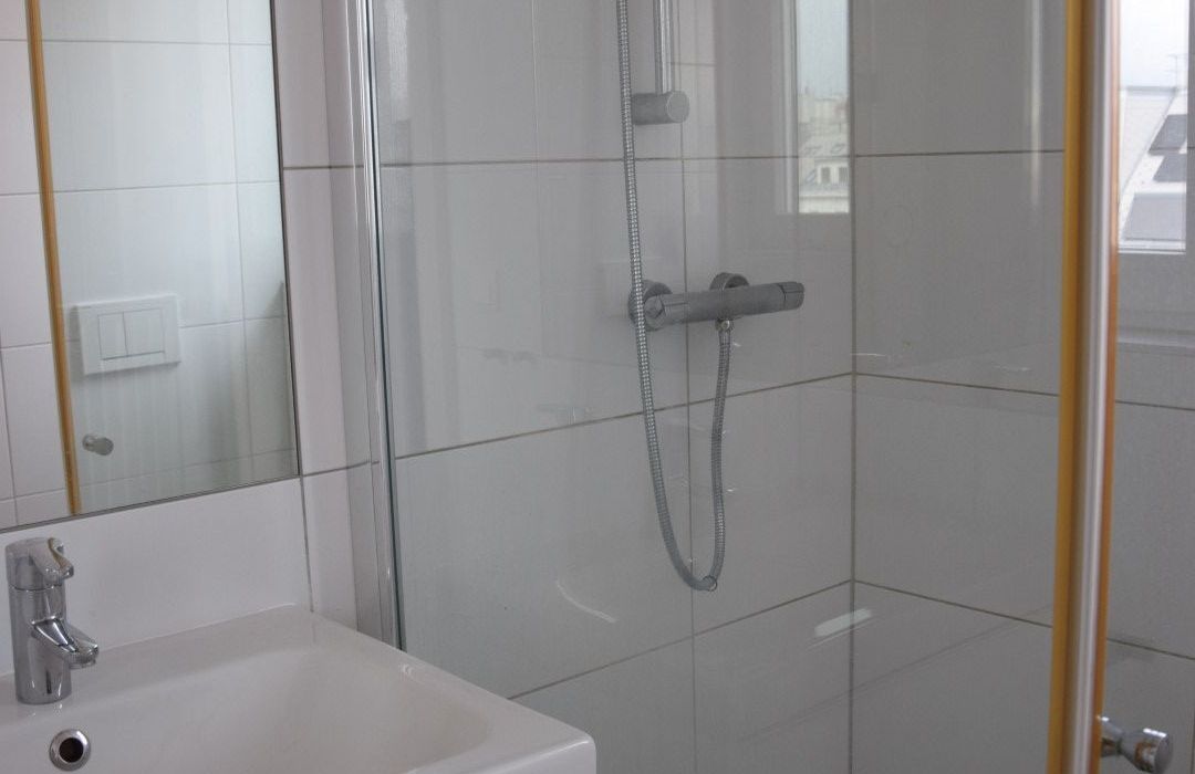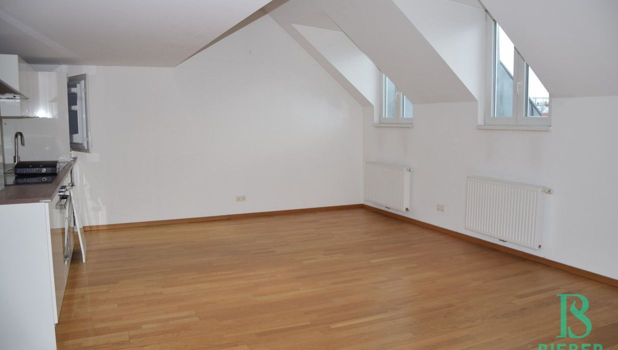 Über den stilvollen Hauseingang gelangt man über Stufen zum Lift, der in das Dachgeschoss (4. Stock) führt, in dem sich diese ca. 85m² große Wohneinheit befindet. Vom großzügigen Vorraum aus ist der herrliche, offen gehaltene Wohnraum mit der modernen Küche zu betreten. Ein Zimmer, ein Bad mit Wanne und Doppelwaschtisch sowie ein separates Gäste-WC sind auf dieser Ebene vorzufinden.