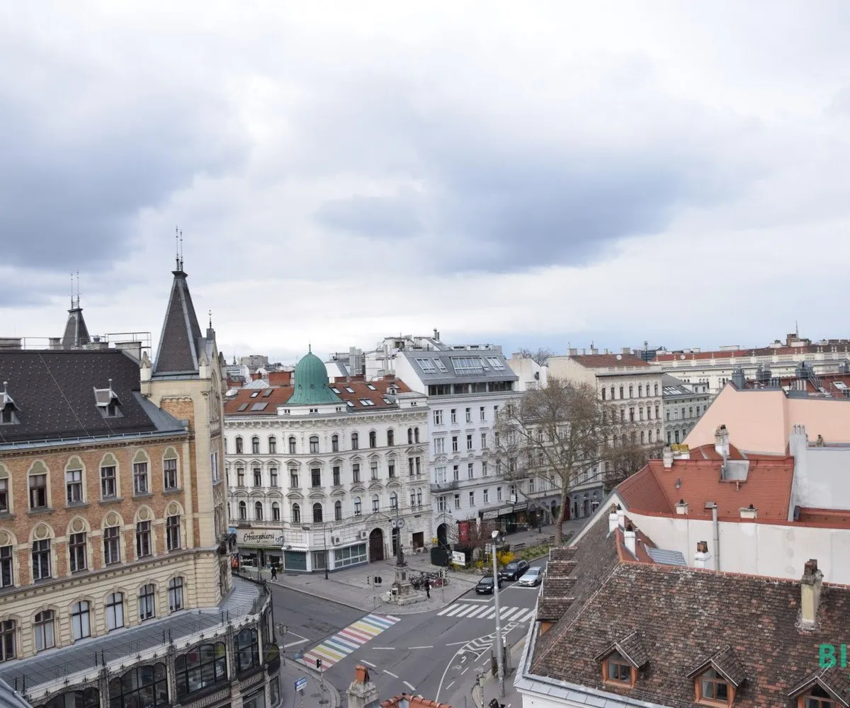 Im trendigen Schlossquadrat, beim Margaretenplatz, befindet sich diese chice, stylisch eingerichtet Dachgeschosswohnung mit der chilligen, ca. 20m² großen Dachterrasse und dem fantastischen Ausblick!