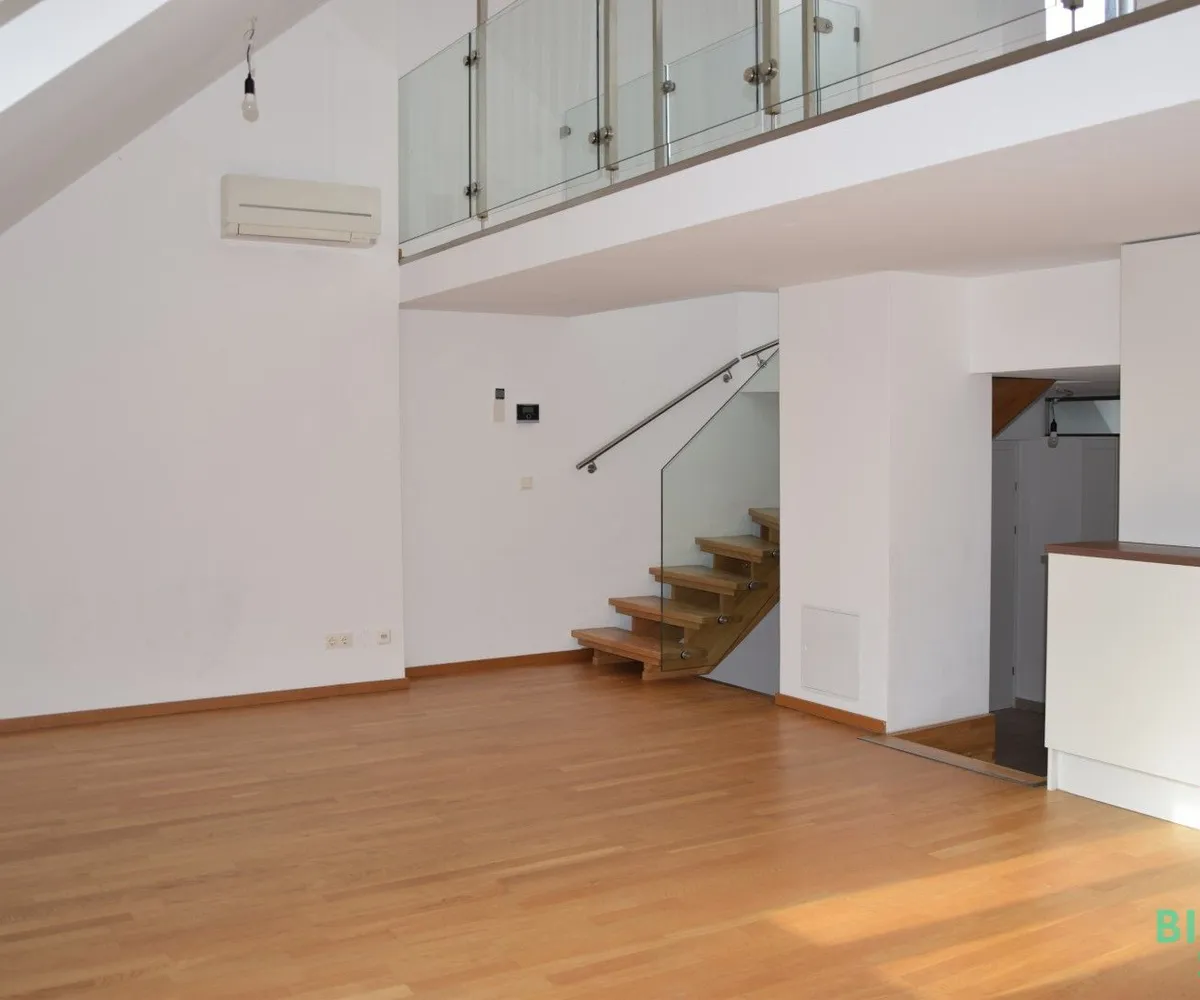 Eine schöne Parkett-Stiege leitet in das Obergeschoss, das durch die außergewöhnliche Galerie einen besonderen Charme erhält. Weiterführend in ein Zimmer mit Duschbad und WC und dem Ausgang auf die traumhafte Dachterrasse sind das highlight dieser Dachgeschosswohnung!