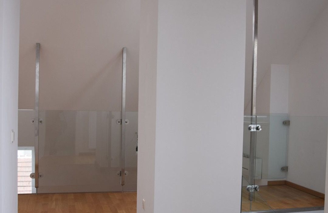 Die vielen, perfekt abgestimmten Glaselemente, wie Stiegengeländer, geben dieser Wohnung einen luftig leichten und vor allem sonnen- und lichtdurchfluteten Charakter!