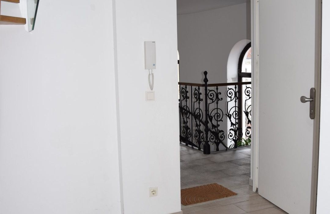Exklusiv ist die Ausstattung, die neben der komplett eingerichteten Küche, den schönen Parkett-/ und Fliesenböden, den Isolierglasfenstern mit Außenrollos, den dekorativen Glaselementen, Kabel-/Telefonanschluß und Gegensprechanlage aufzuwarten hat.