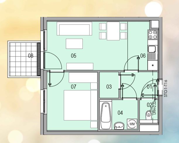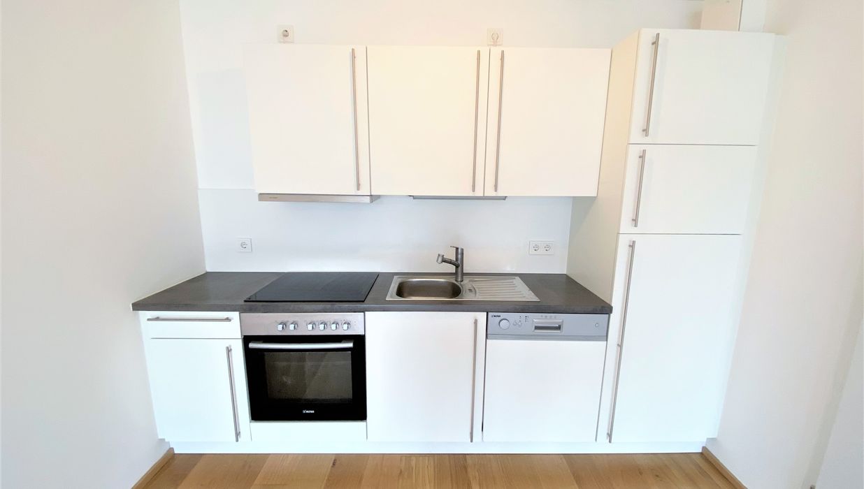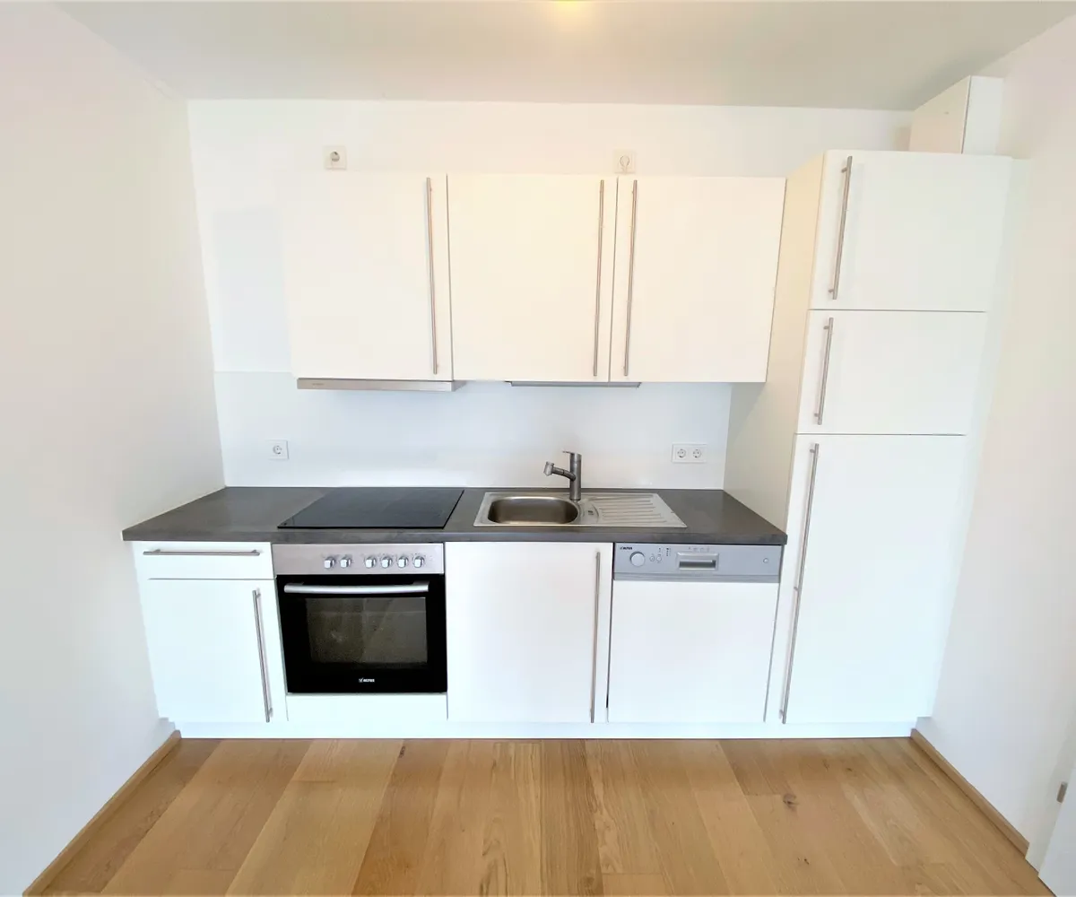 Die Wohnung selbst befindet sich im 2. Obergeschoss und gliedert sich in eine großzügige Wohnküche, ein ruhiges Schlafzimmer, ein modernes Badezimmer mit Wanne und Waschmaschinenanschluss, eine separate Toilette und einen Vor- sowie Abstellraum. Des Weiteren verfügt die Wohnung über einen rund 4m² großen Balkon.