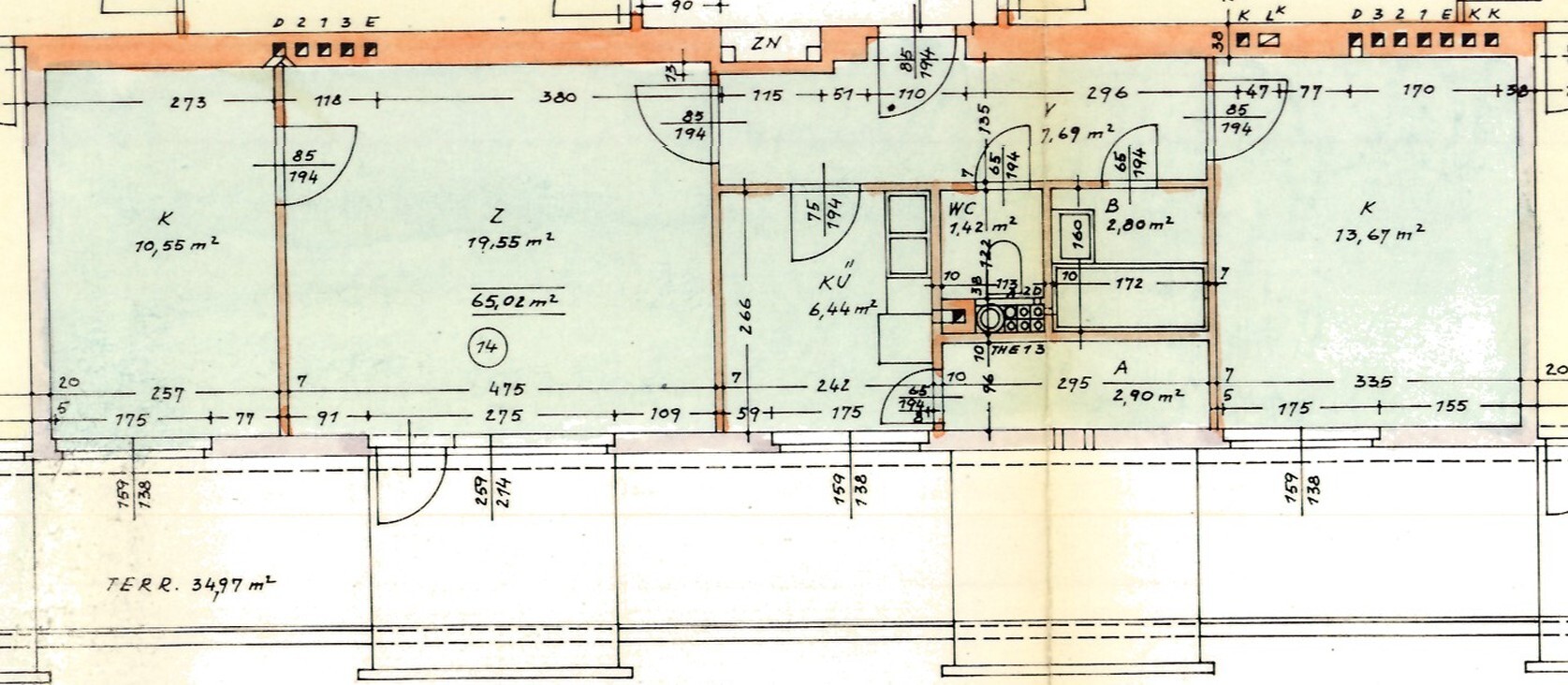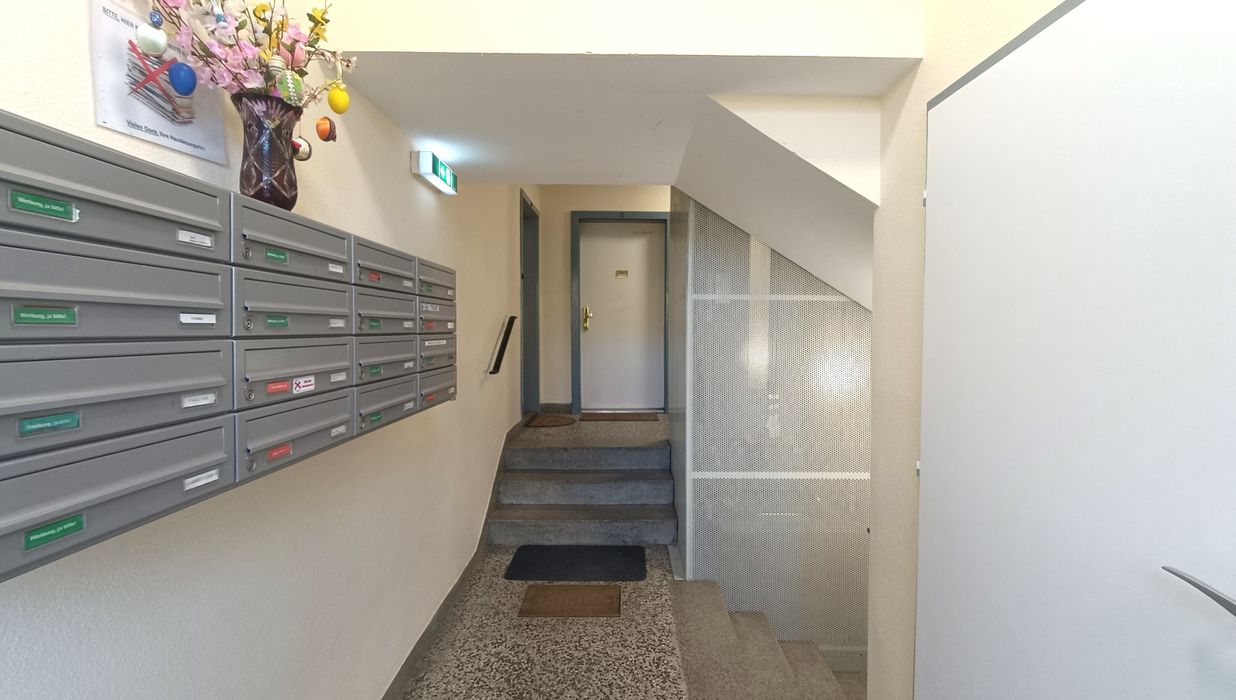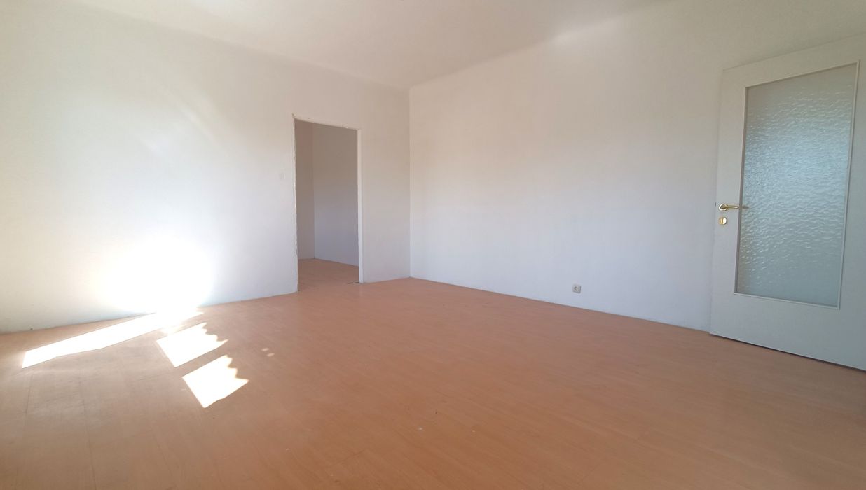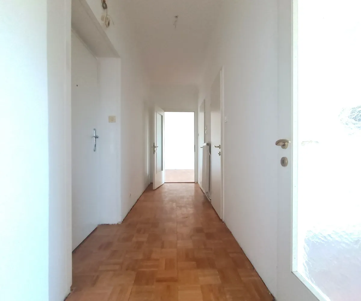 Vom Vorraum aus erreichen Sie das erste Schlafzimmer mit einer Fläche von rund 13,67 m² . Ebenso im Vorraum befindet sich das Badezimmer und die separate Toilette , sowie der Zugang Richtung Wohnzimmer und Küche. Die Küche selbst bietet eine Fläche von rund 6,44 m² und der direkt angrenzende Abstellraum erweitert das Raumangebot. Das Wohnzimmer bietet auf einer Fläche von rund 19,55 m² viel Raum für die persönliche Gestaltung und Einrichtung. Das zweite Schlafzimmer mit einer Fläche von rund 10,55 m² ist vom Wohnzimmer aus zu erreichen.