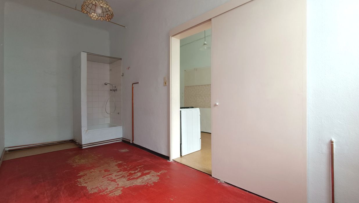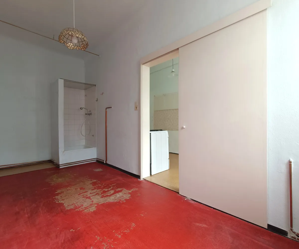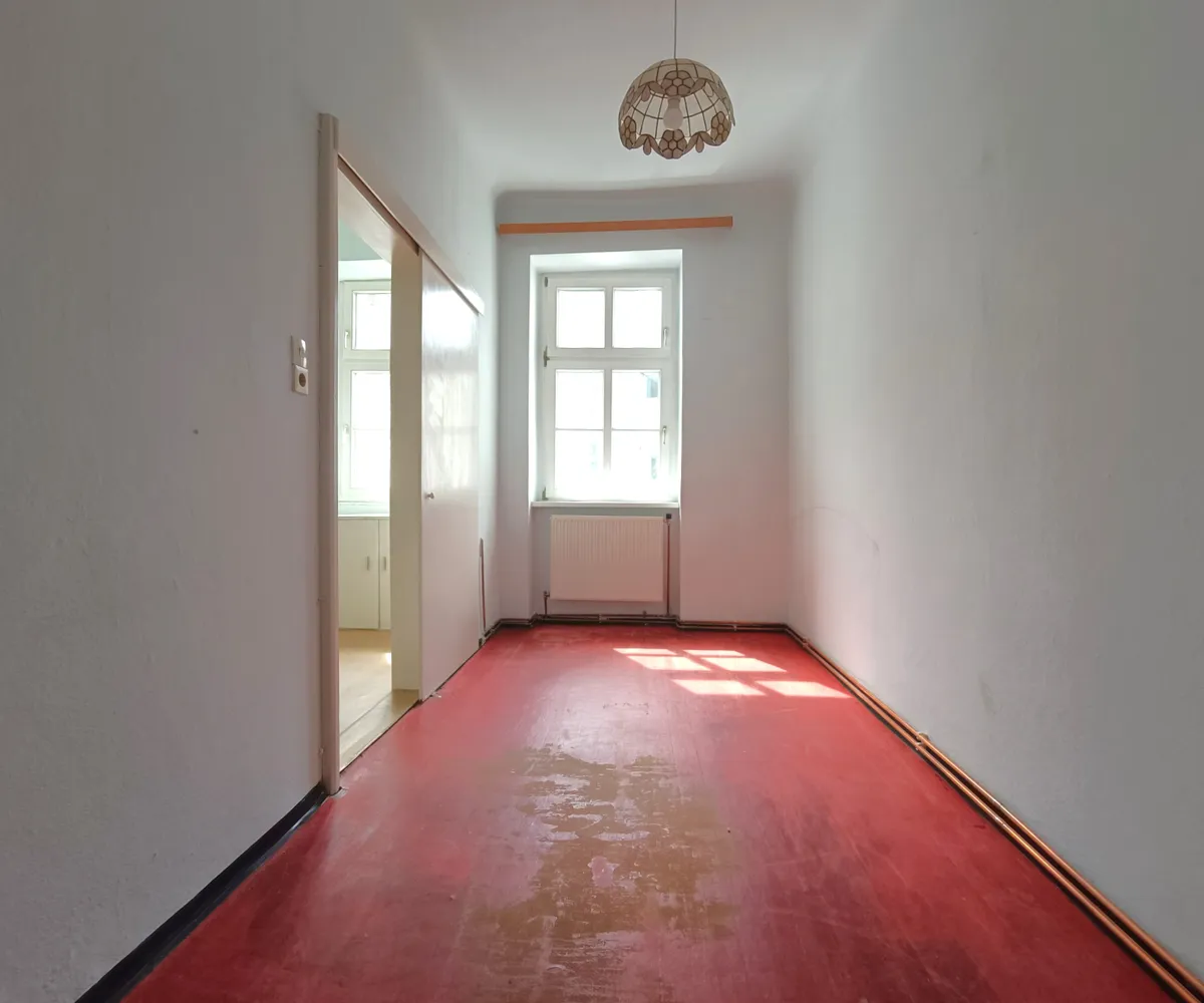Im Vorraum der Wohnung befindet sich die Küchenzeile und von hier aus erreichen Sie das Wohnzimmer sowie Schlafzimmer . Das Schlafzimmer überzeugt mit Ausrichtung in den Innenhof und bietet einen entspannten Ausblick. Ruhige Nächte sind hier garantiert! Im aktuellen Zustand befindet sich hier im hinteren Bereich eine Duschkabine - Eine Lösung für ein Badezimmer en suite würde sich hier besonders anbieten. Das Wohnzimmer selbst bietet mit rund 23,23 m² viel Platz für die persönliche Einrichtung und Gestaltung. Wohn- und Essbereich finden problemlos Ihren Platz.