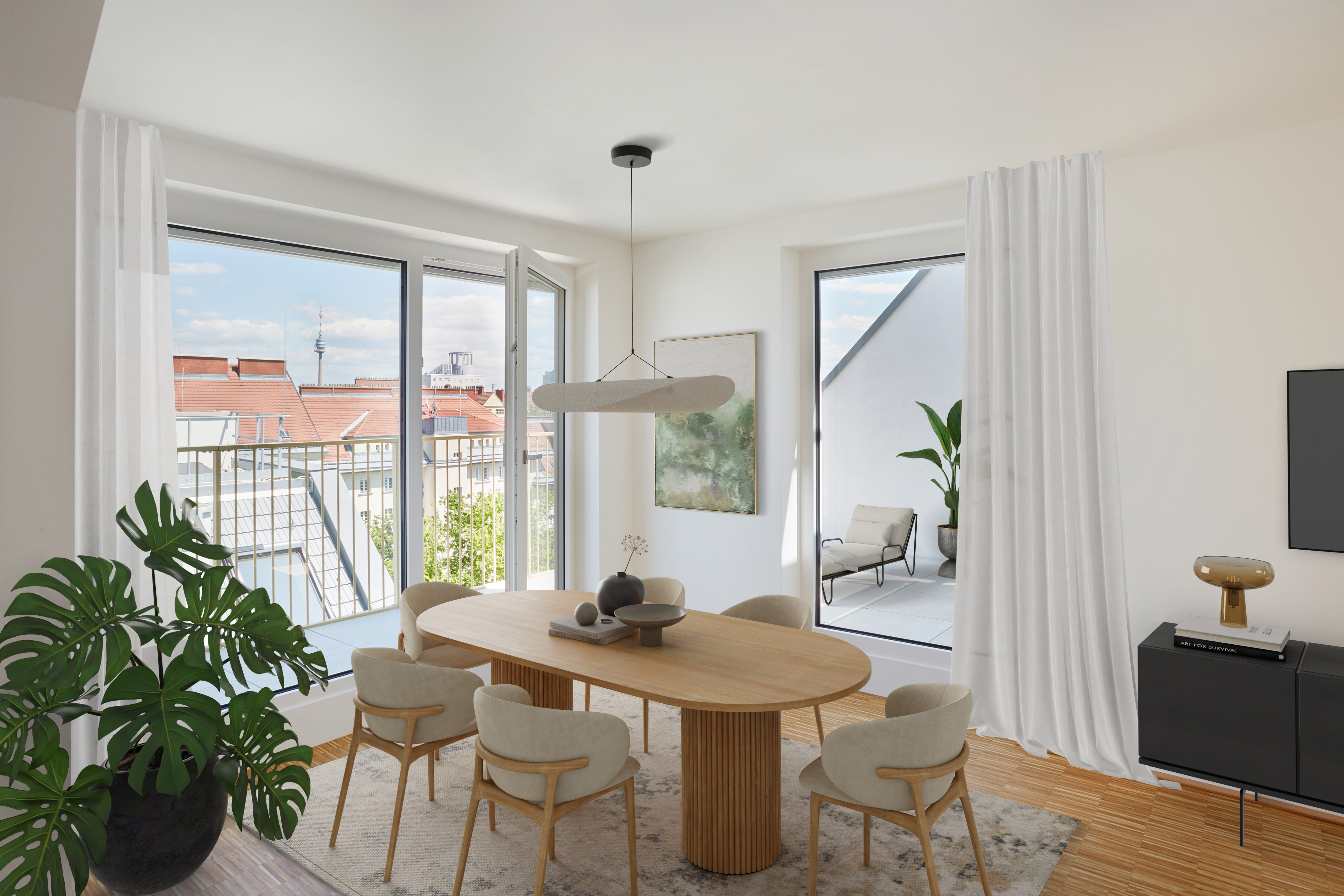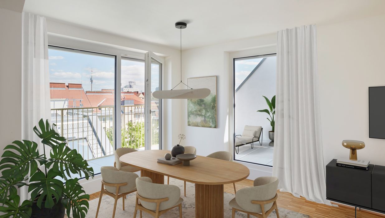 Mit einem beeindruckenden 360-Grad-Blick bis zum Stephansdom, einem nachhaltigen Energiekonzept und begrünten Flächen vereint das Projekt höchsten Wohnkomfort.
