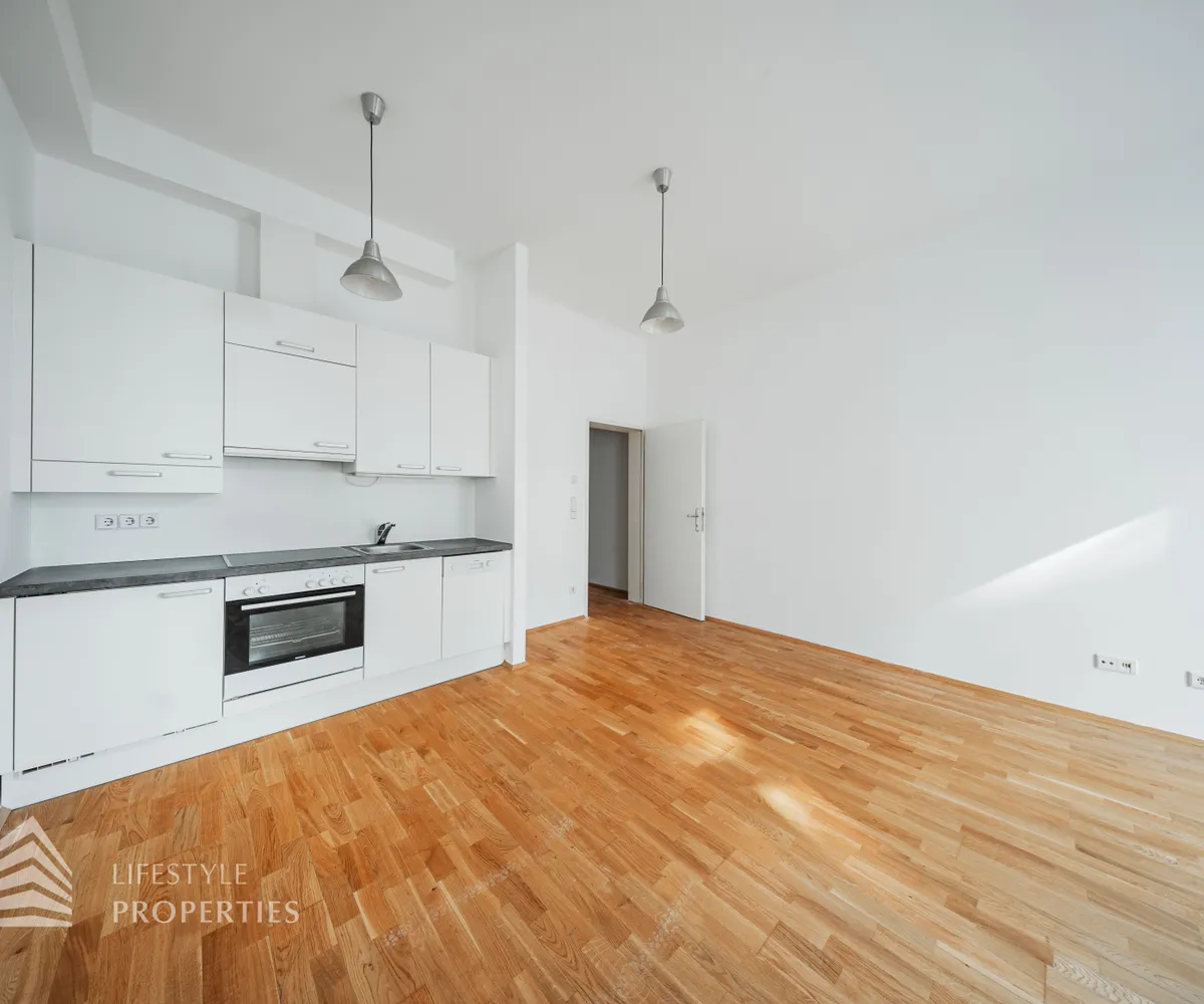 Vom ca. 5 m² großen Vorraum aus sind alle Räume zentral begehbar, was eine optimale Nutzung der Wohnfläche ermöglicht. Das separate WC (ca. 1 m²) sorgt für zusätzlichen Komfort, während das Badezimmer (ca. 4 m²) mit Badewanne und praktischem Waschmaschinenanschluss ausgestattet ist. Das Herzstück der Wohnung bildet die großzügige Wohnküche (ca. 22 m²). Sie ist voll ausgestattet und bietet ausreichend Platz für einen gemütlichen Wohn- und Essbereich. Große Fenster lassen viel Tageslicht herein und schaffen eine freundliche, einladende Atmosphäre. Ein besonderes Highlight ist der private Garten (ca. 28 m²) – eine seltene Gelegenheit, mitten in der Stadt eine grüne Ruheoase zu genießen. Ob zum Entspannen, Gärtnern oder geselligen Beisammensein, dieser Außenbereich bietet unzählige Möglichkeiten.