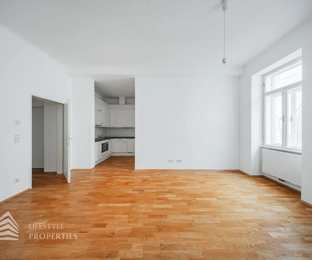 Beim Betreten der Wohnung gelangt man in den ca. 6 m² großen Vorraum, von dem aus alle Räume erreichbar sind. Das separate WC mit Handwaschbecken ist funktional gestaltet, während das ca. 5 m² große Badezimmer mit Badewanne und Waschmaschinenanschluss ausgestattet ist. Das südseitige Schlafzimmer mit einer Größe von ca. 15 m² bietet eine angenehme Ruhe und eignet sich ideal als Rückzugsort. Besonders hervorzuheben ist die großzügige, ca. 27 m² große Wohnküche, die gartenseitig ausgerichtet ist und mit hochwertigen Einbaugeräten ausgestattet wurde – perfekt für gemütliche Abende und geselliges Beisammensein.