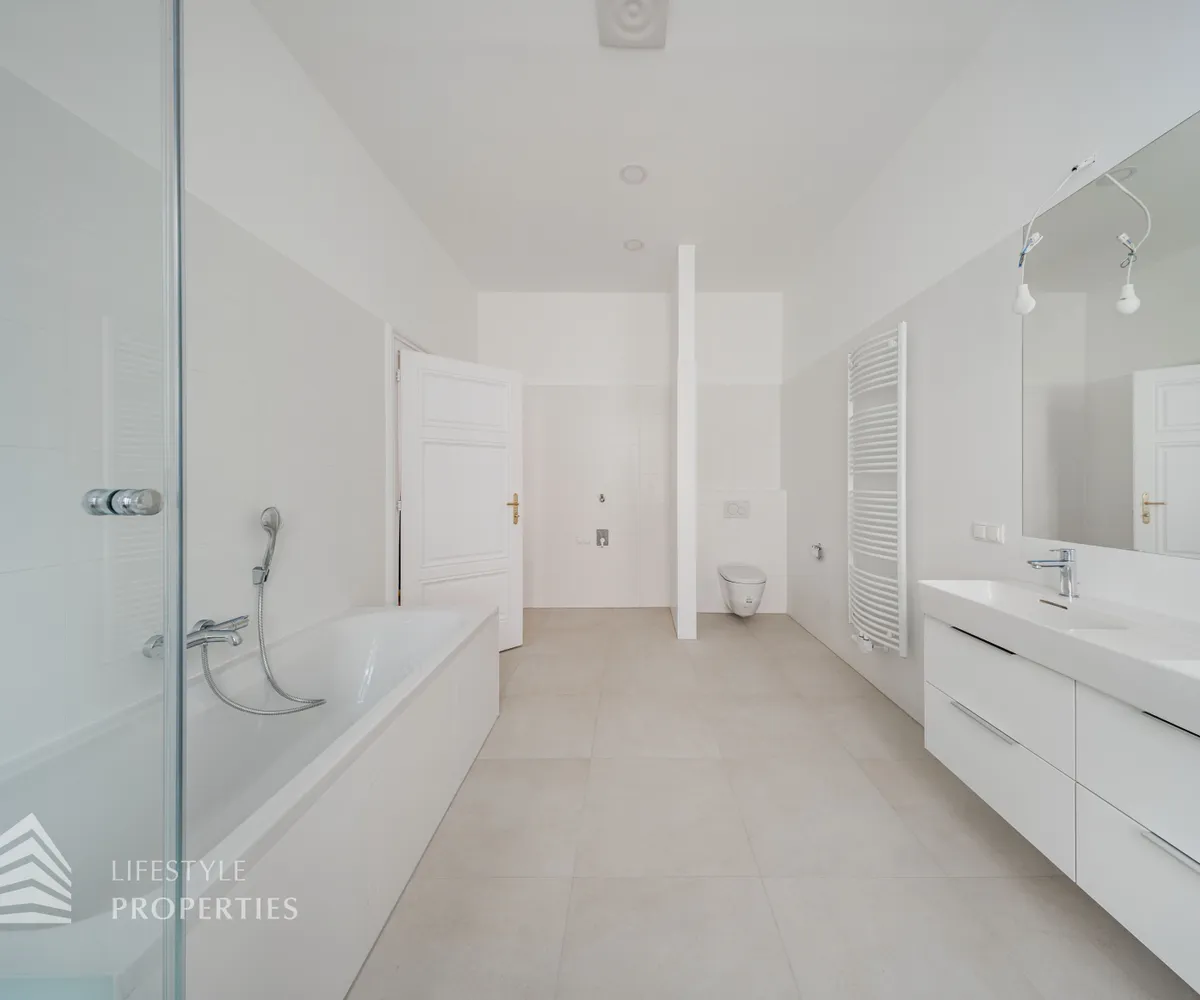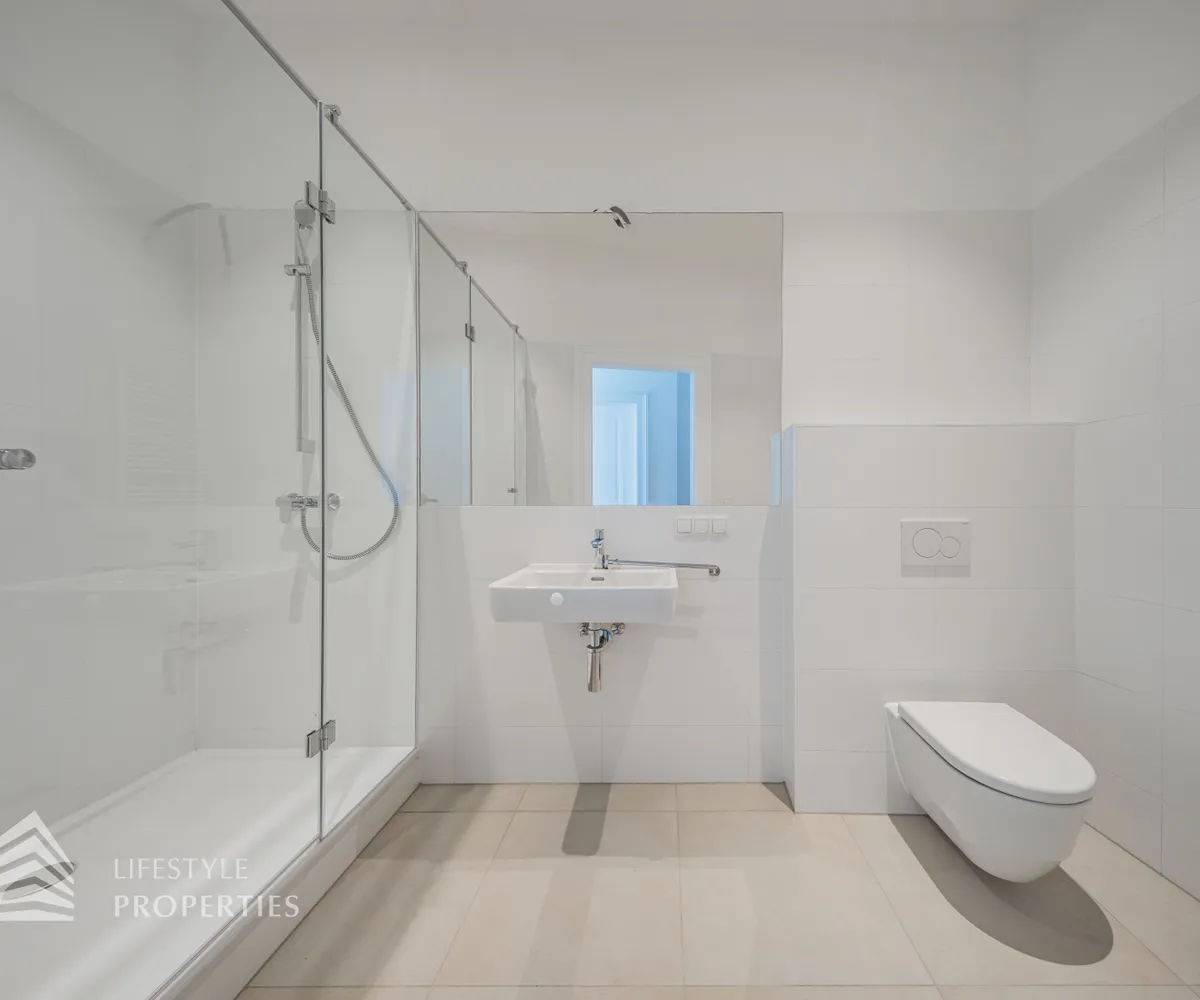 Sie betreten die Wohnung und befinden sich direkt im ca. 6,65 m² großzügigen Vorraum. Geradeaus vom Vorzimmer erreicht man die ca. 23,44 m² vollausgestattete Küche, diese über eine Kochinsel und viel Stauraum verfügt. Es ist auch genug Platz für einen kleinen Frühstückstisch. Nebenan befindet sich das exklusive Badezimmer, dieses mit einer Badewanne, einer Dusche, einen Doppelwaschbecken, einen Waschmaschinenanschluss und einer Toilette ausgestattet ist. Von der Küche, gelangt man durch eine Flügeltüre in das ca. 38,02 m² beeindruckende Wohn/Esszimmer, dieses genug Platz für einen Esstisch und einer Couchlandschaft verfügt. Beim Eingang befinden sich auf der linken Seite zwei Abstellräume und auf der rechten Seite die Gästetoilette. Den Gang entlang kann man auch das Wohn/Esszimmer betreten. Des Weiteren erreicht man die vier mit Schlafzimmer und ein weiteres Badezimmer, dieses mit einer Dusche, einen Waschbecken und einer Toilette ausgestattet ist. Das größte mit ca. 26,03 m² Schlafzimmer mit seinem beeindruckenden Ausblick verfügt auch über einen ca. 7,65 m² großen Schrankraum. Die drei weiteren Schlafzimmer haben eine Größe zwischen 12 m² und 15 m².