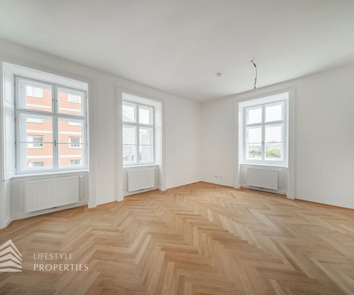Die Wohnung befindet sich im vierten Stock eines repräsentativen Altbaugebäudes in der Wiener Innenstadt, welches zur Jahrhundertwende erbaut wurde.