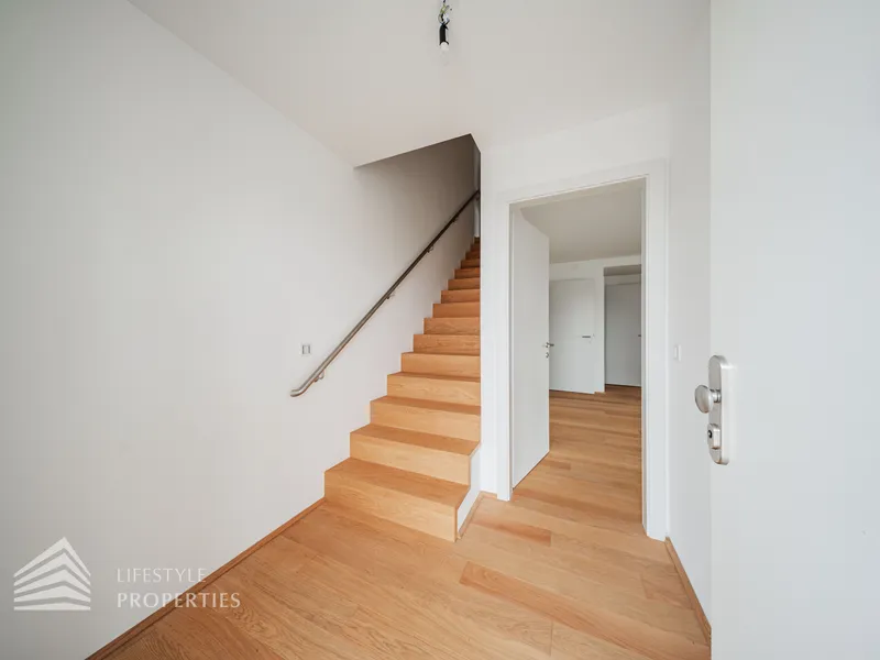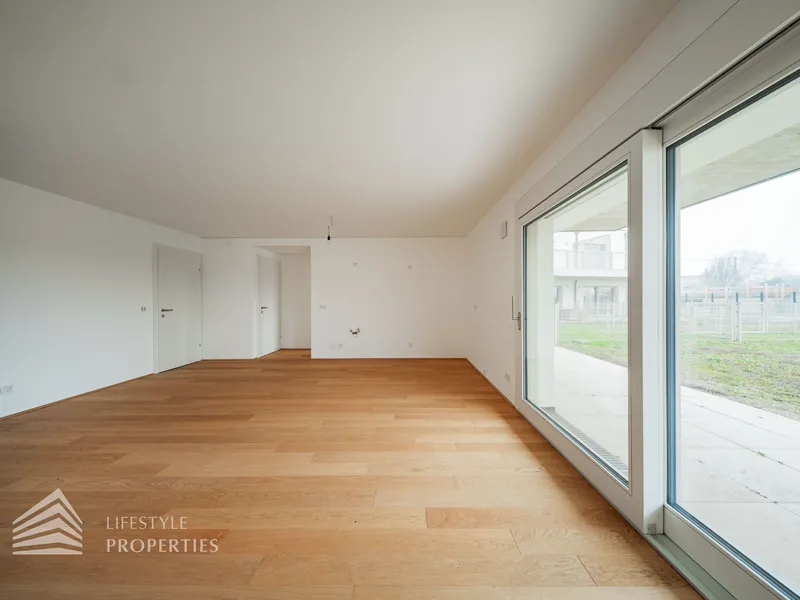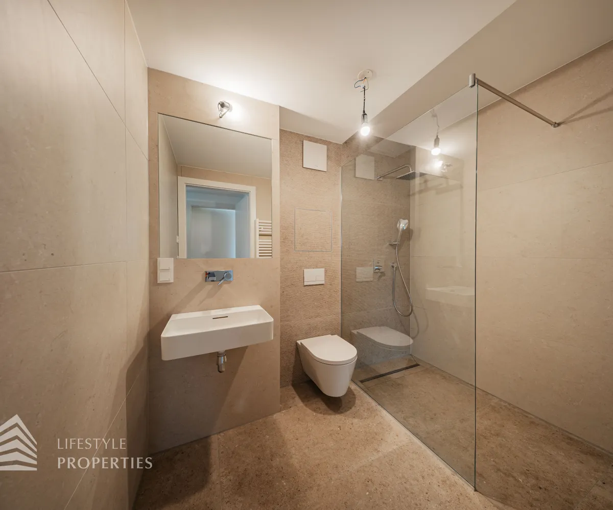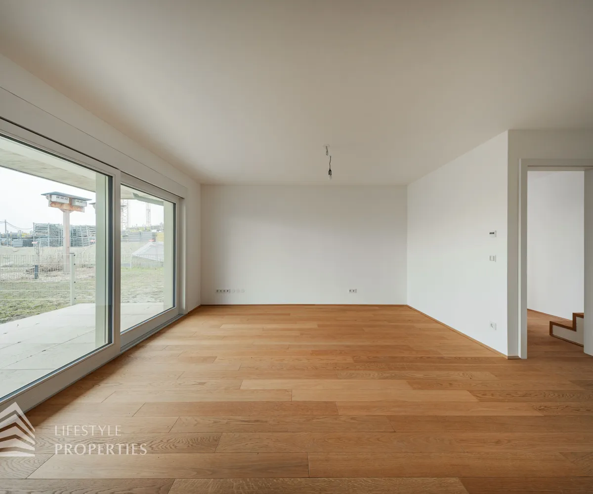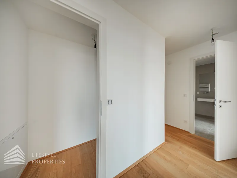 Die Wohnungen werden mittels Fußbodenheizung über eine Luft-Wärmepumpe geheizt, eine Deckenkühlung sorgt in den warmen Monaten für angenehme Temperaturen und Vorrichtungen zum Einbau einer Klimaanlage sind auch vorhanden. Weiters sind elektrisch betriebene Außenjalousien / Raffstores vorhanden. Ein Platz in der hauseigenen Tiefgarage kann zusätzlich erworben werden.