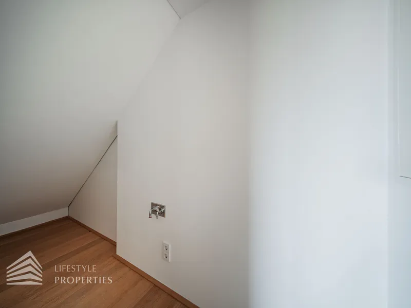 Alle Zimmer sind mit schönem Eichenparkett ausgestattet, die Nassräume sind verfliest.