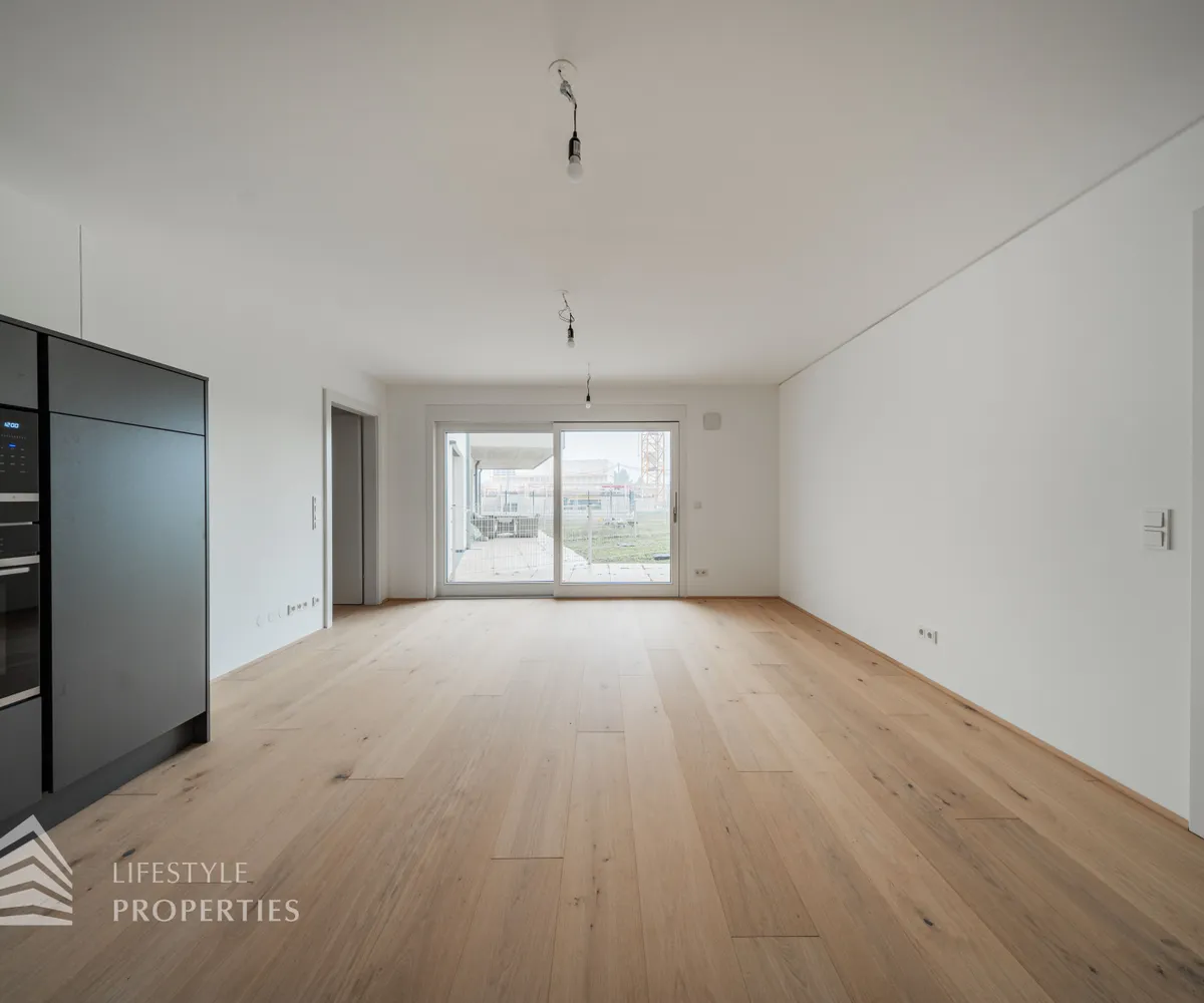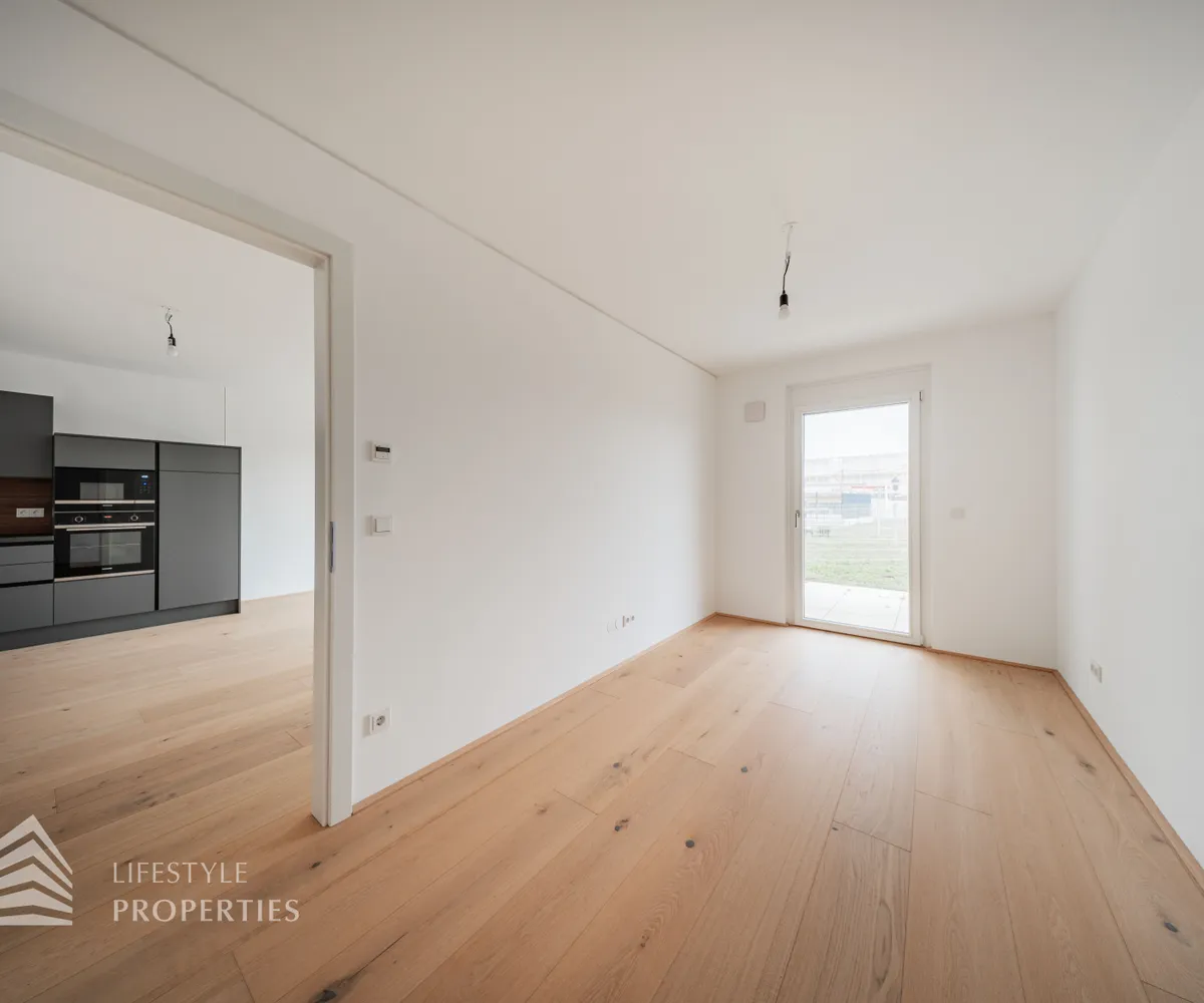 Die Wohnung befindet sich im EG und hat eine Größe von ca. 78,29 m², sie gliedert sich in eine große Wohnküche mit einer schönen, voll ausgestatteten Küche, zwei Schlafzimmer, einen Vorraum, zwei Bäder mit Dusche und Waschbecken und ein separates WC. Außerdem hat die Wohnung einen großen Garten und Terrasse.