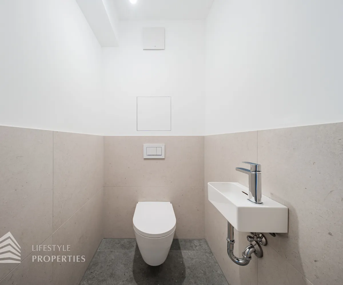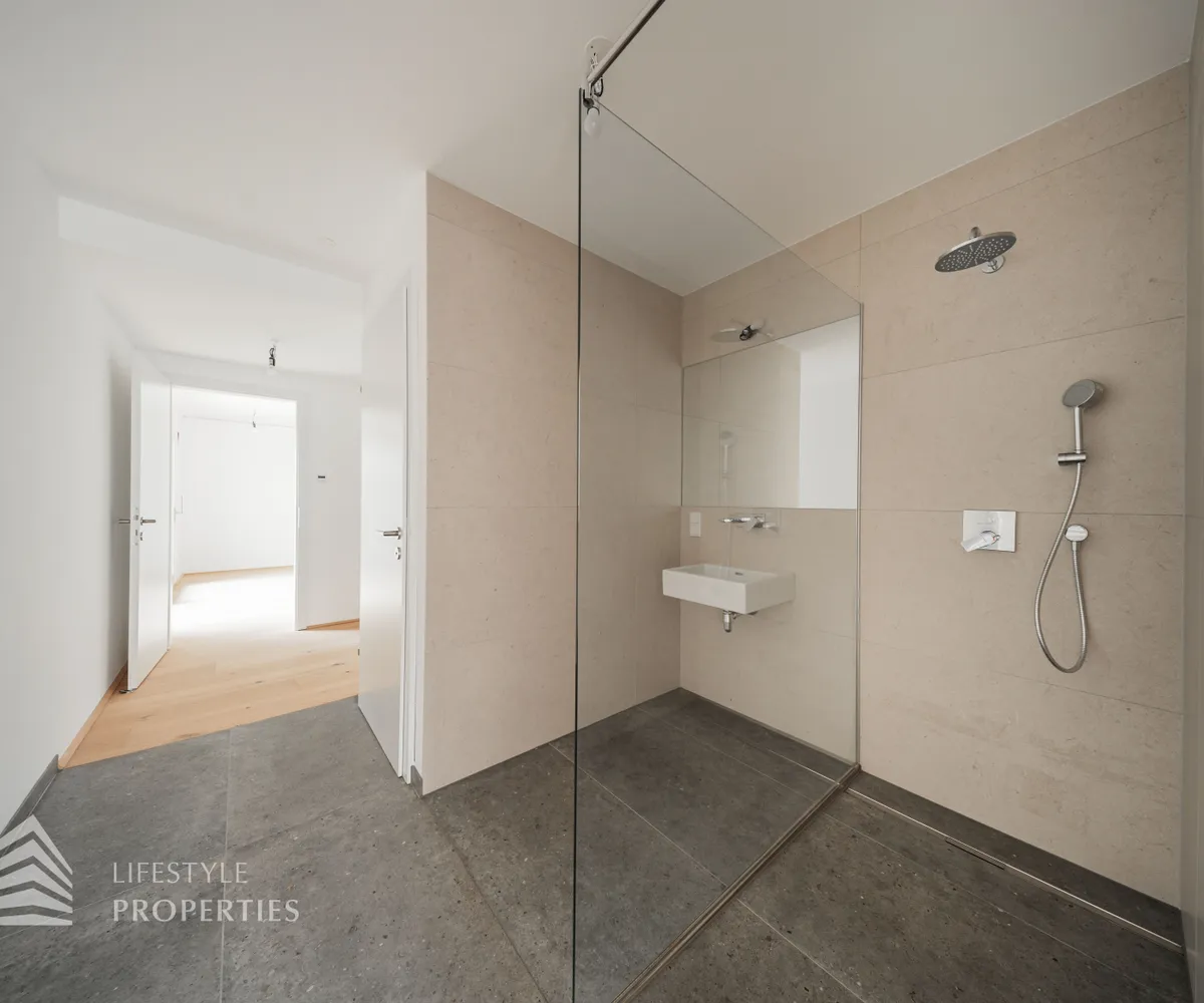 Die Wohnungen werden mittels Fußbodenheizung über eine Luft-Wärmepumpe geheizt, eine Deckenkühlung sorgt in den warmen Monaten für angenehme Temperaturen und Vorrichtungen zum Einbau einer Klimaanlage sind auch vorhanden. Weiters sind elektrisch betriebene Außenjalousien / Raffstores vorhanden. Ein Platz in der hauseigenen Tiefgarage kann zusätzlich erworben werden.