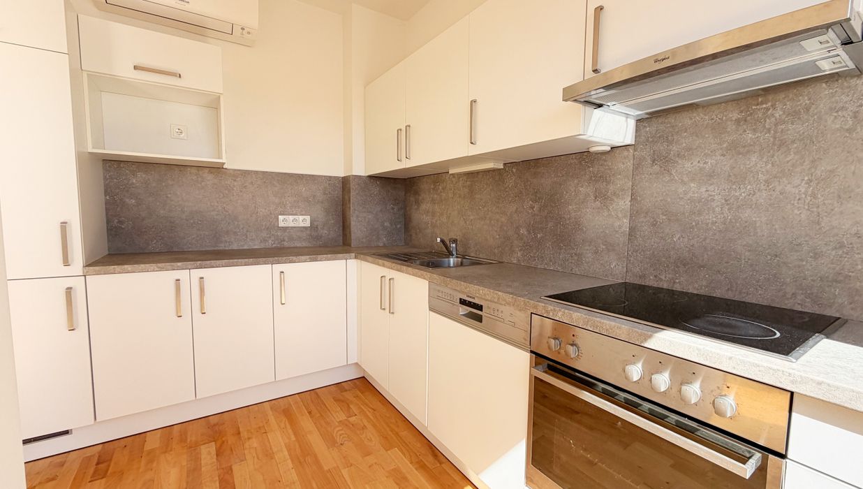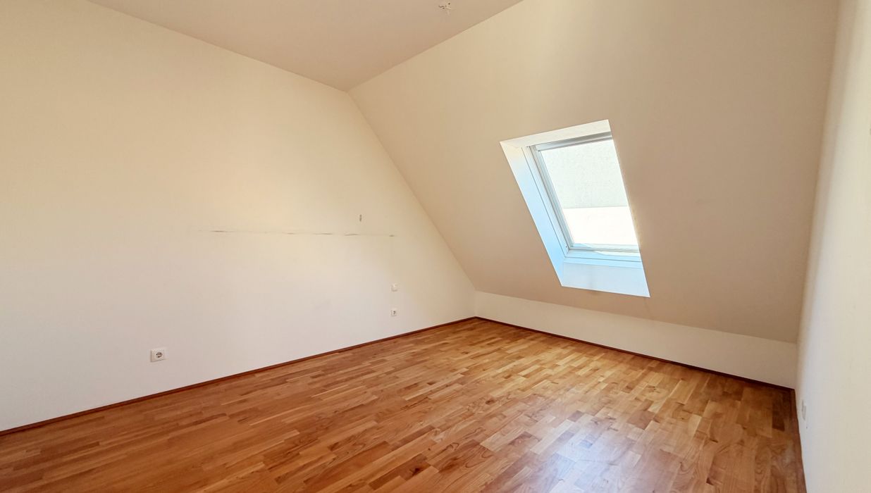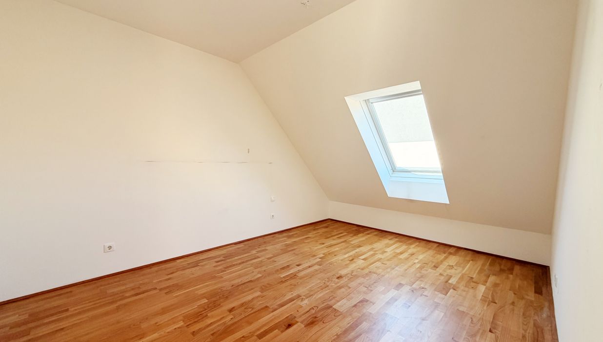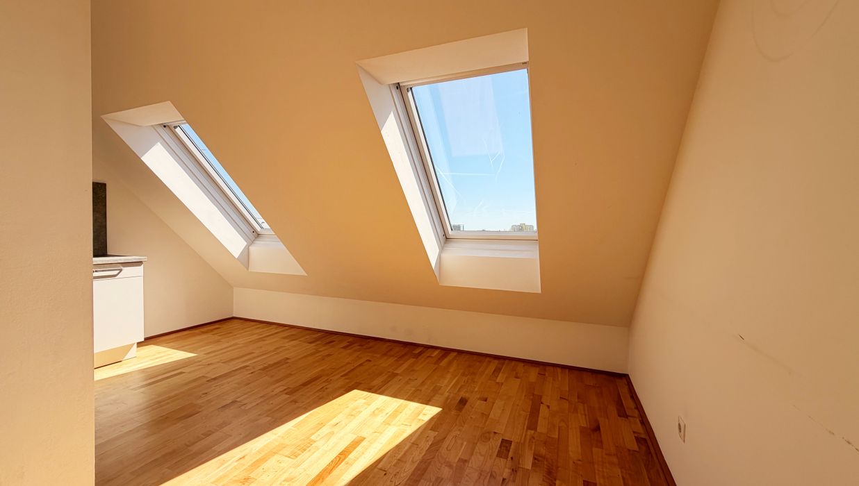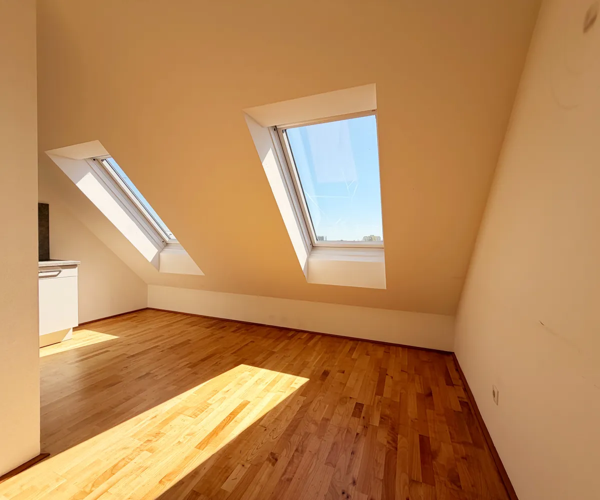 Die Wohnung befindet sich im 1. Dachgeschoss und verfügt über eine großzügige Wohnküche mit Einbauküche, ein helles Schlafzimmer, ein Badezimmer mit Badewanne und Waschbecken, WC und Waschmaschinenanschluss, ein separates Gäste-WC, sowie einen Vorraum. Das Highlight ist der südöstlich ausgerichtete Balkon mit Loggia.