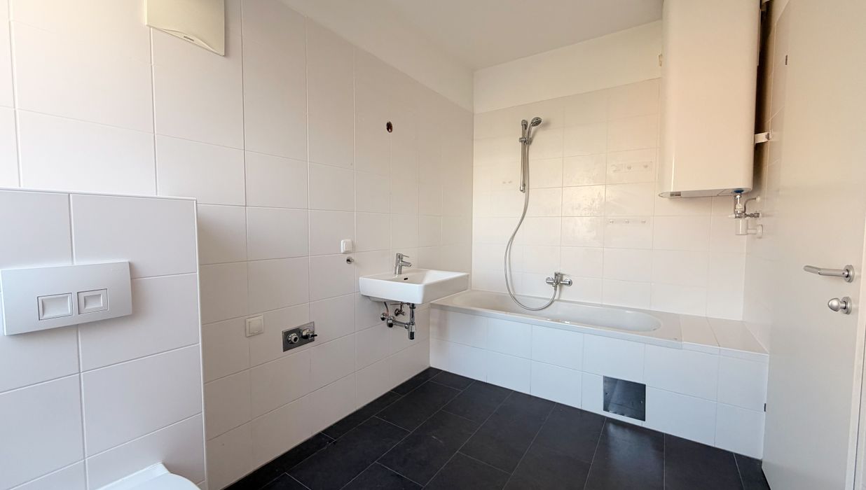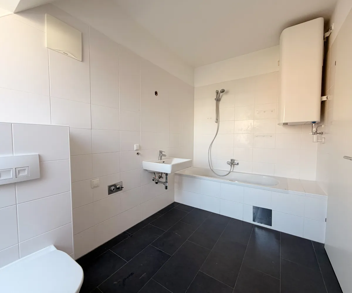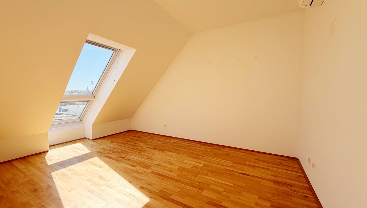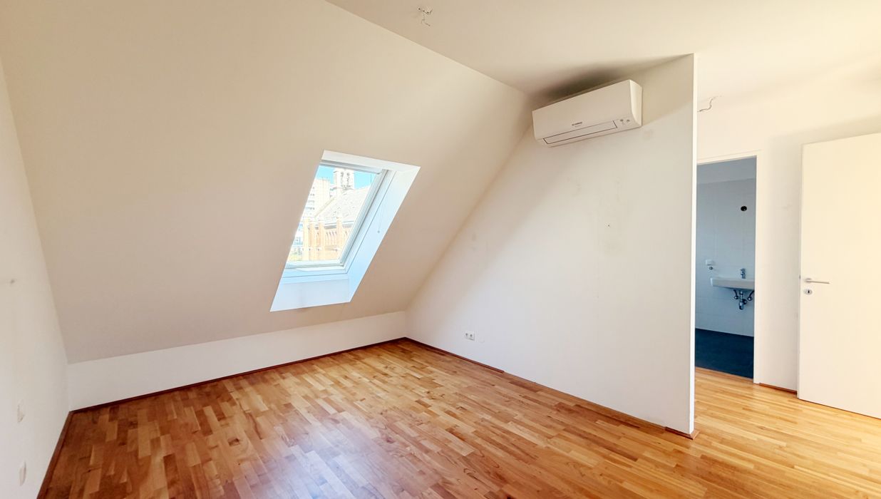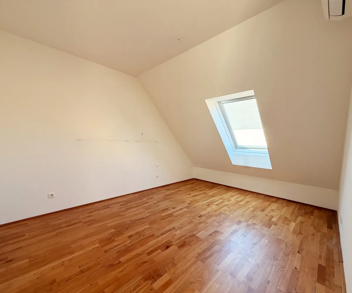 Die Wohnung befindet sich im 1. Dachgeschoss und verfügt über eine großzügige Wohnküche mit Einbauküche, ein helles Schlafzimmer, ein Badezimmer mit Badewanne und Waschbecken, WC und Waschmaschinenanschluss, ein separates Gäste-WC, sowie einen Vorraum. Das Highlight ist der südöstlich ausgerichtete Balkon mit Loggia.