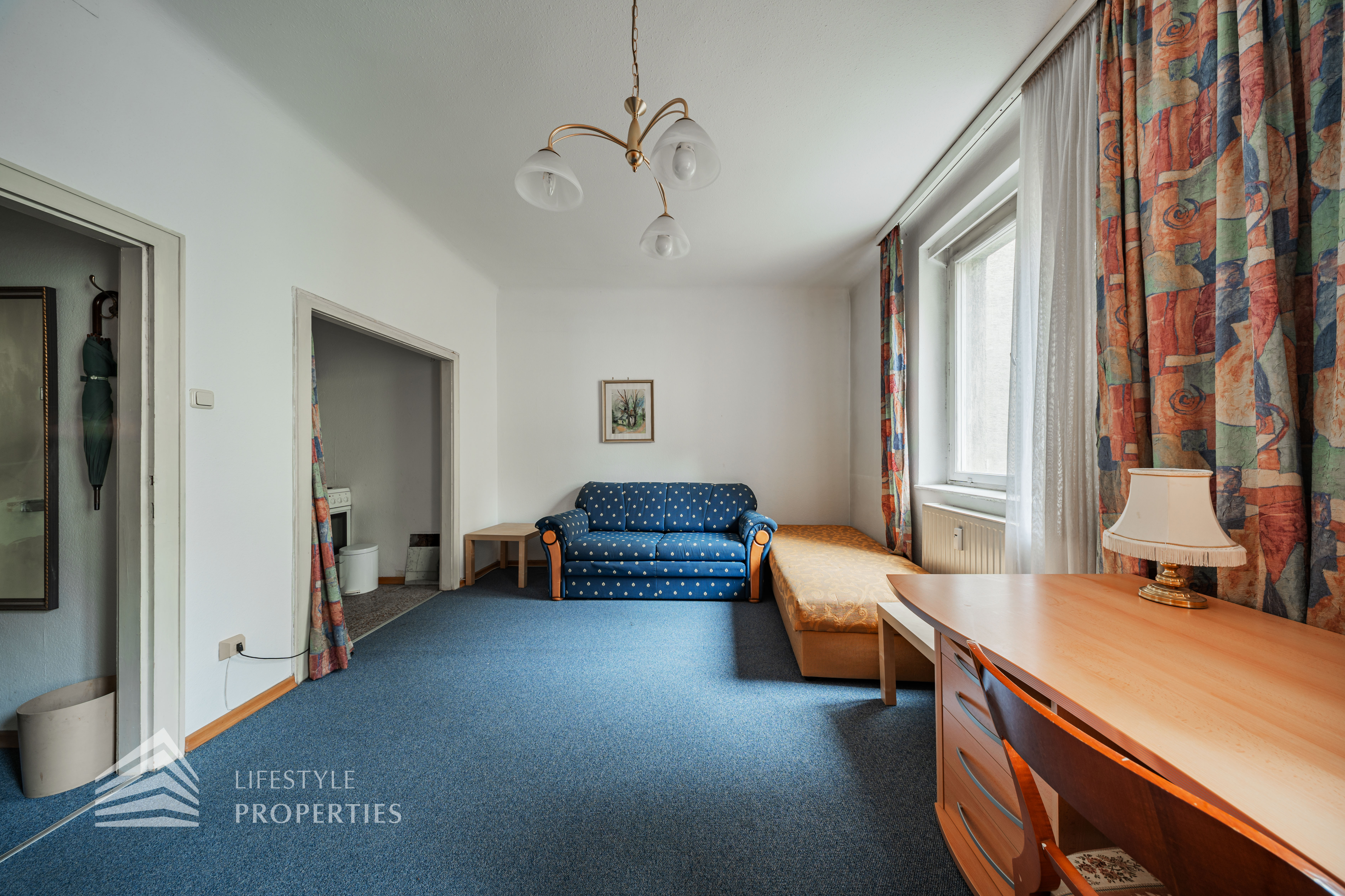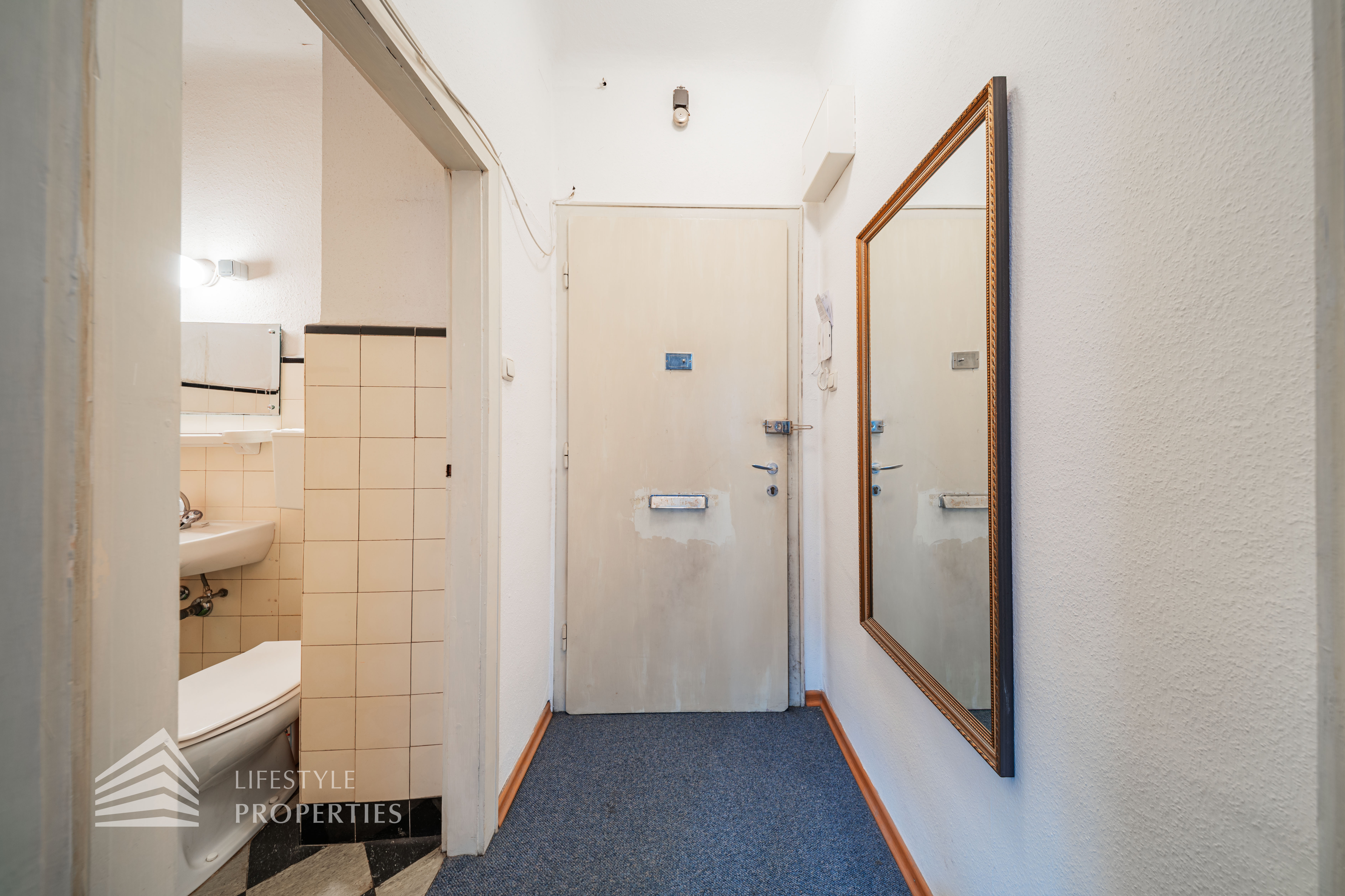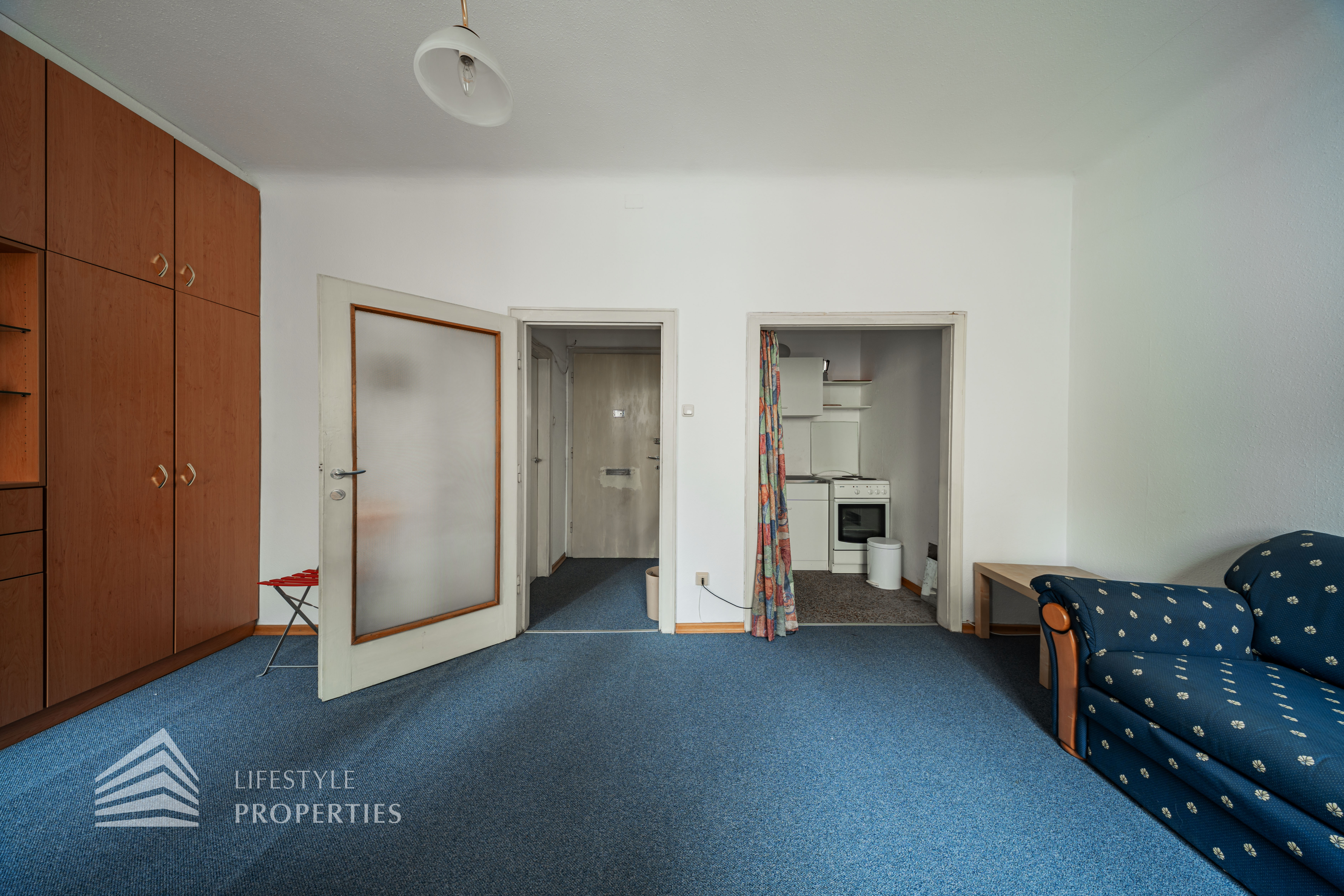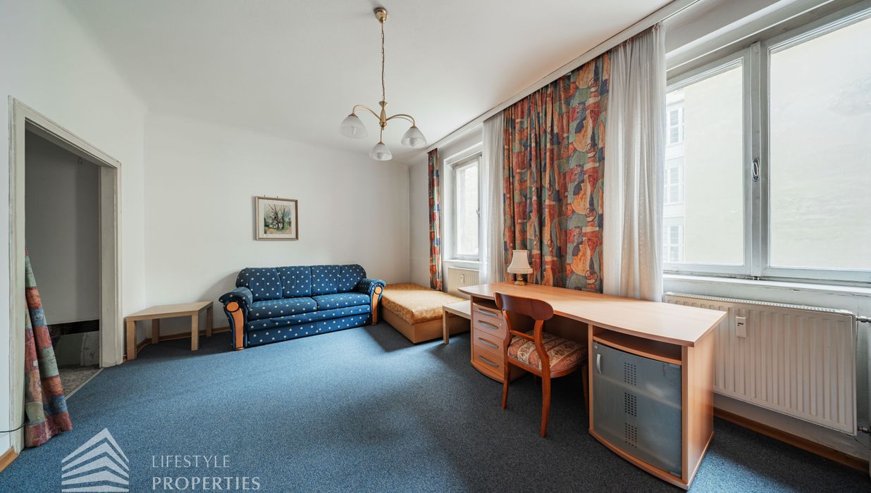 Bei Betreten der Wohnung gelangen Sie in den Vorraum, von welchem Sie rechterhand das Badezimmer betreten können. Dieses ist mit einer Badewanne, einer Toilette, einem Waschbecken und einer Waschmaschine ausgestattet. Gerade durch den Vorraum hindurch erwartet Sie das gemütliche Wohn-/Schlafzimmer. Dieses dient sowohl als gemütlicher Rückzugsort als auch als einladender Wohnbereich. Die separate, voll ausgestattete Küche befindet sich in einer praktischen Nische des Wohnraumes und kann bei Bedarf abgetrennt werden. Ein besonderes Highlight: Die Wohnung ist in den ruhigen Innenhof ausgerichtet, wodurch eine angenehme Ruhe mitten in der Stadt garantiert ist.