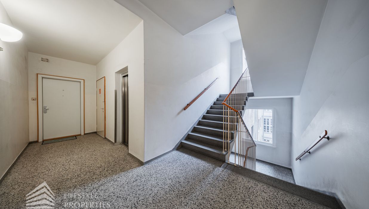 Das Wohnhaus selbst ist in einem sehr gepflegten Zustand und vereint historischen Charme mit modernem Wohnkomfort. Es verfügt über einen Personenaufzug, der für barrierefreien Zugang sorgt, sowie über Kellerabteile, die zusätzlichen Stauraum bieten. Die Wohnung im 3. Liftstock überzeugt mit einem durchdachten Grundriss und einer angenehmen Wohnatmosphäre.