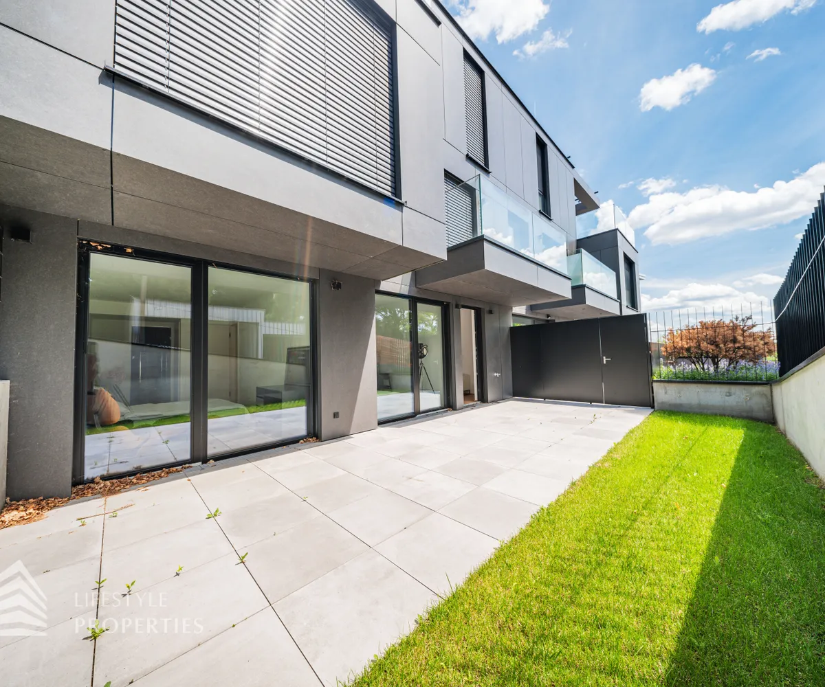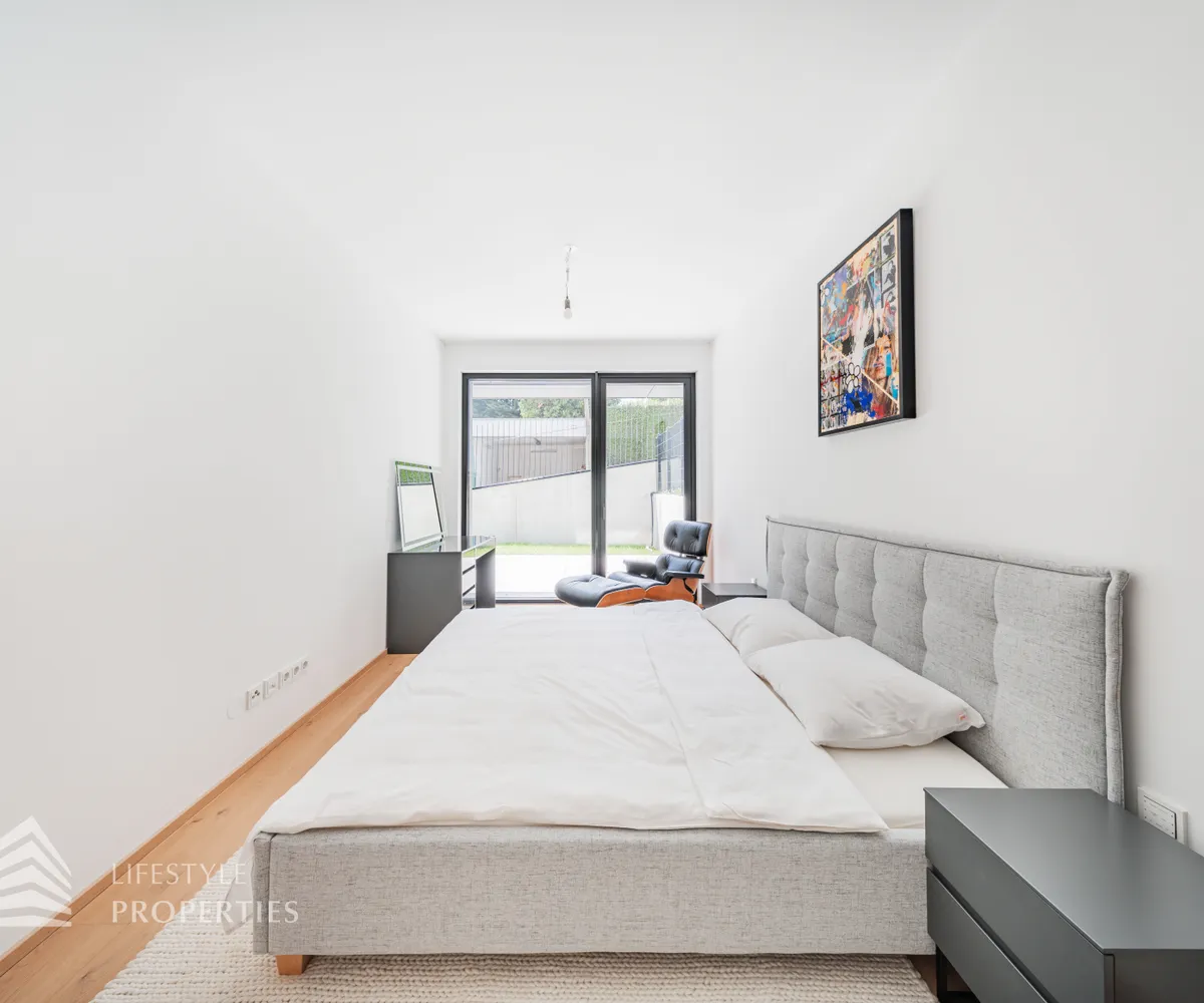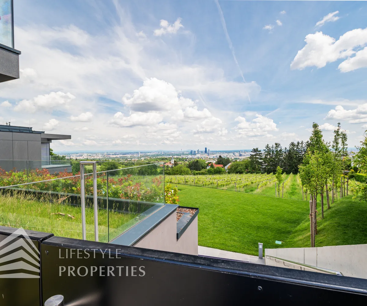 großen Garten, welcher Sie um die gesamte Wohnung führt. Hier haben Sie einen atemberaubenden Fernblick auf Wien.