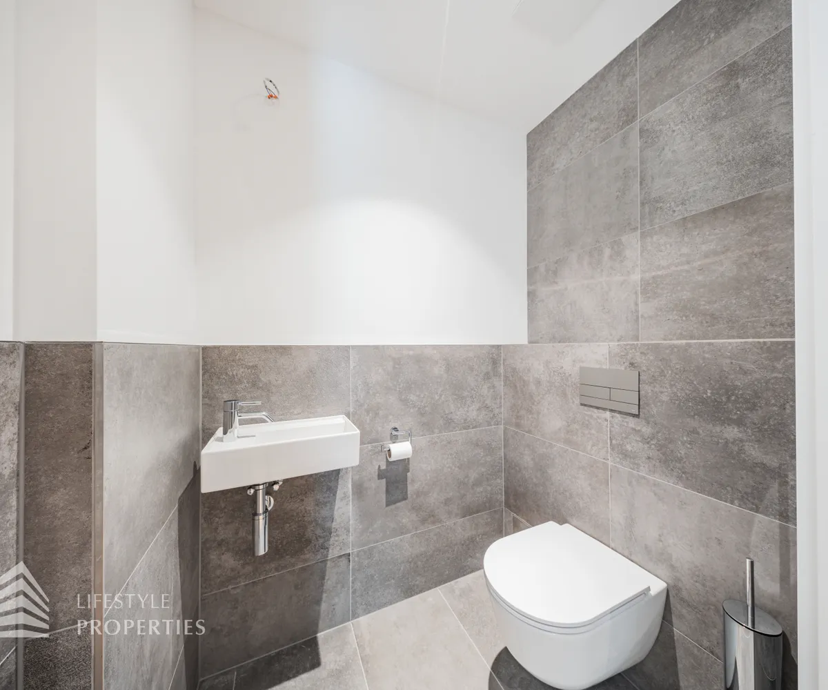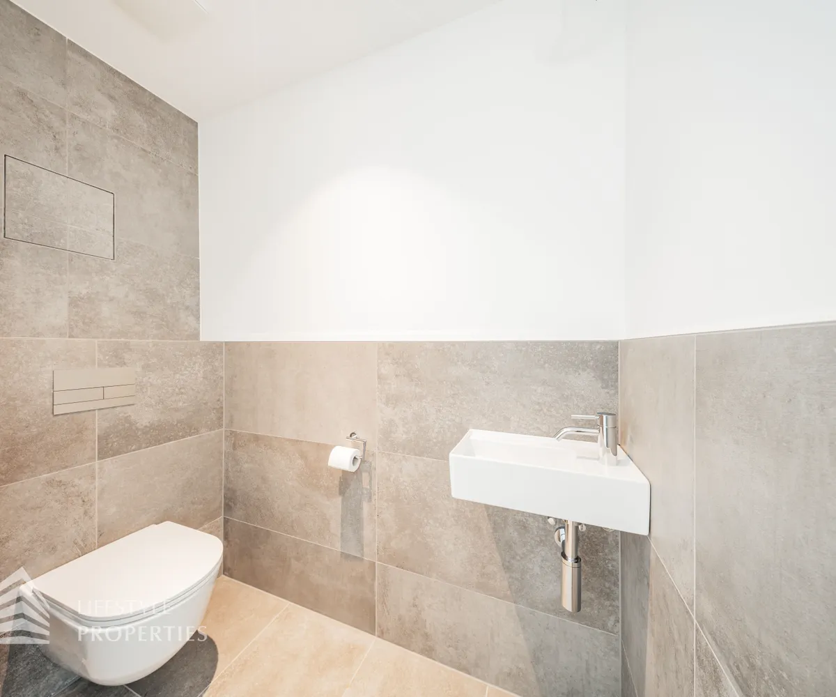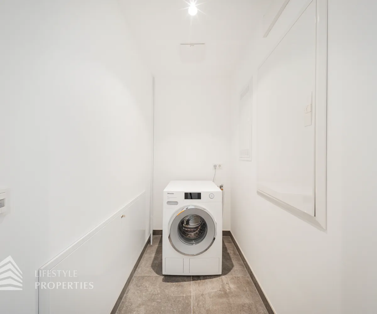 Über den Vorraum gelangt man in das zweite Badezimmer, den Abstellraum mit Waschmaschinenanschluss und ein weiteres WC.