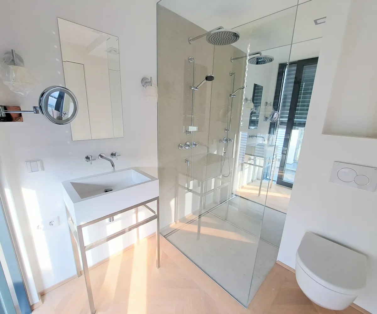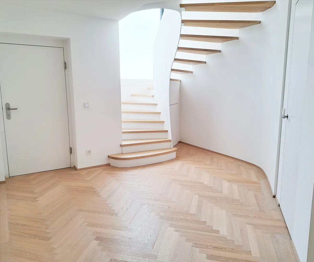 Diese Maisonette-Wohnung wurde ohne Dachschrägen neu errichtet, um höchste Ansprüche an Qualität und Design zu erfüllen. Jeder Raum wurde mit Liebe zum Detail gestaltet, um modernen Wohnkomfort zu gewährleisten. Auf beiden Ebenen findet sich ein eigener Zugang zum neu errichteten, verglasten Lift.