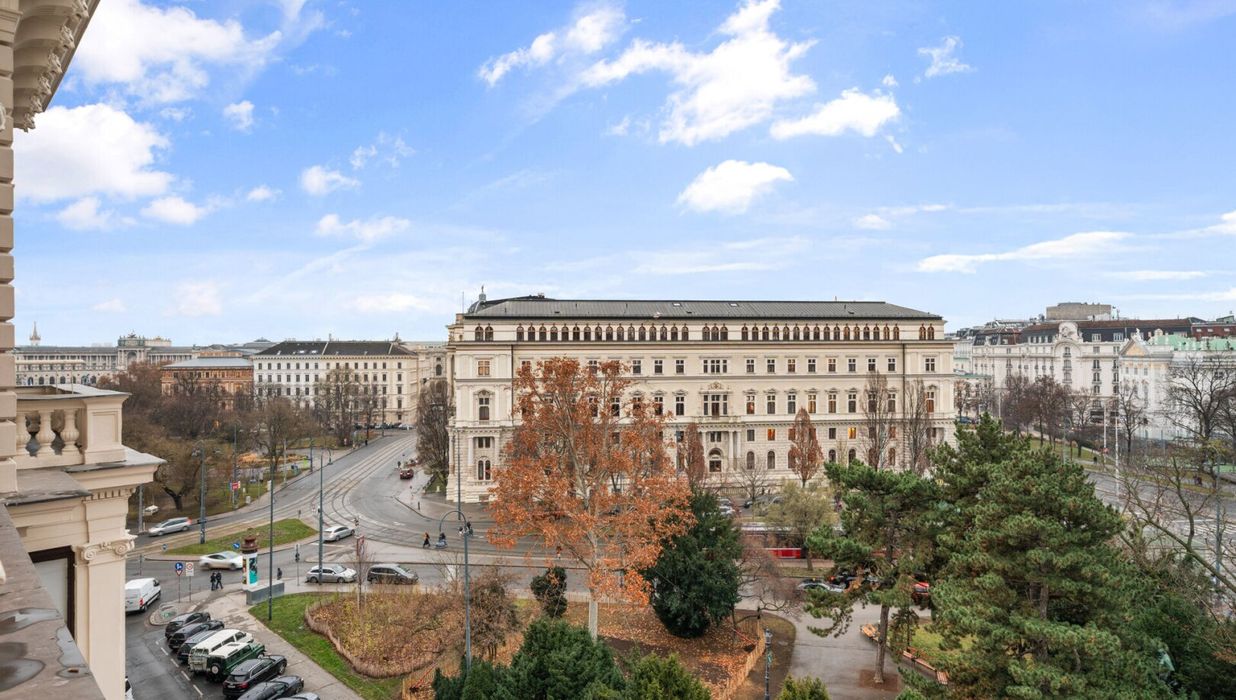 Die Wohnung liegt in absoluter Premiumlage der Wiener Innenstadt, direkt am Schmerlingplatz. Hier treffen historische Architektur, kulturelle Institutionen und urbane Lebensqualität aufeinander. Das Parlament, der Volksgarten und der Burggarten befinden sich in unmittelbarer Nähe, ebenso wie erstklassige Gastronomie, Nahversorgung und öffentliche Verkehrsmittel.