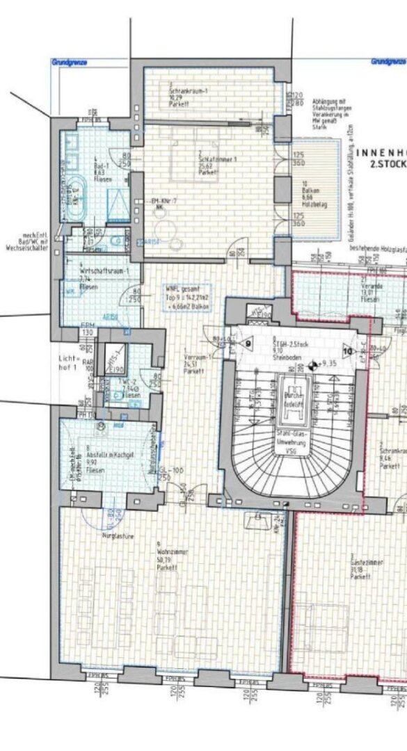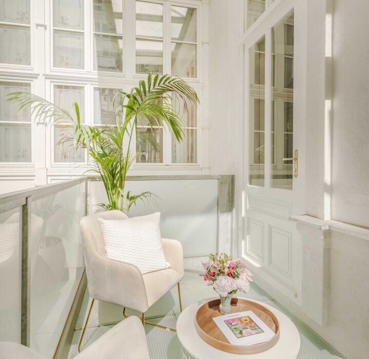 Ein Balkon zum Innenhof, Fußbodenheizung, Deckenkühlung, BUS-System und Concierge-Service sorgen für zeitgemäßen Wohnkomfort in historischem Ambiente.